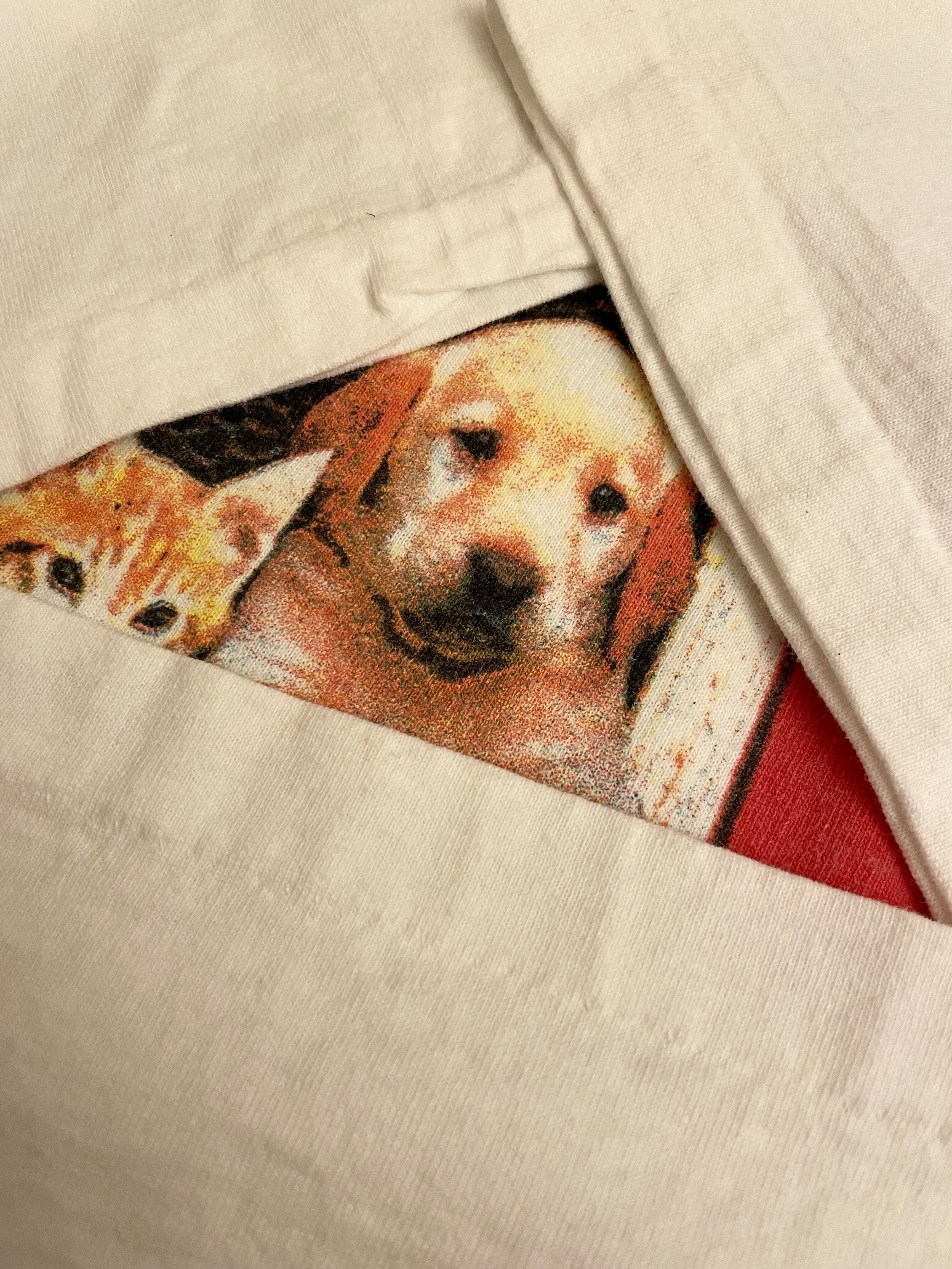 90s Animal print tee Dog & Cat art プリントT