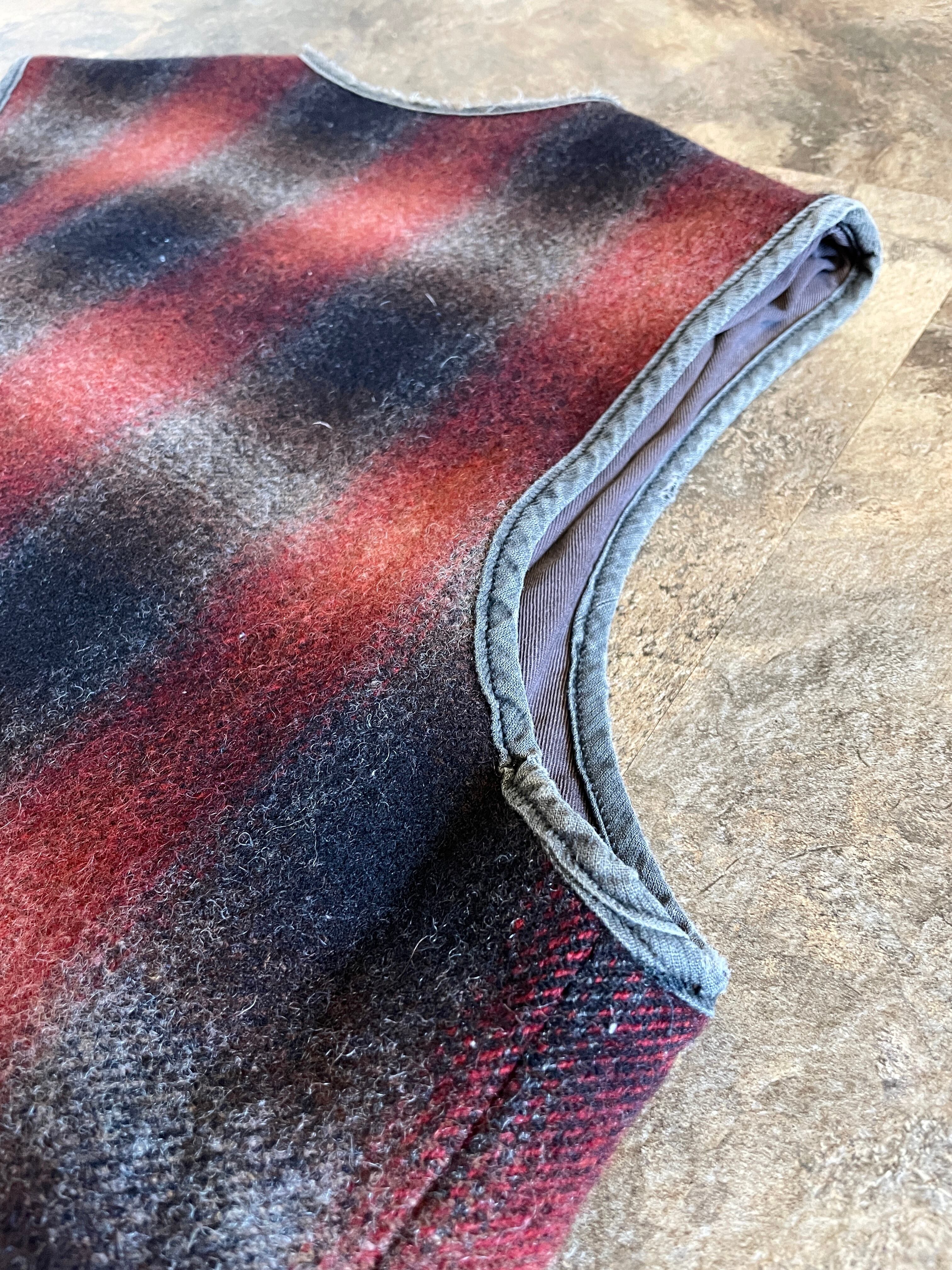 パイピングの擦れやインナー生地のフェード。メタル素材のスナップボタンのハゲなどヴィンテージとしての雰囲気も抜群なベストです。
