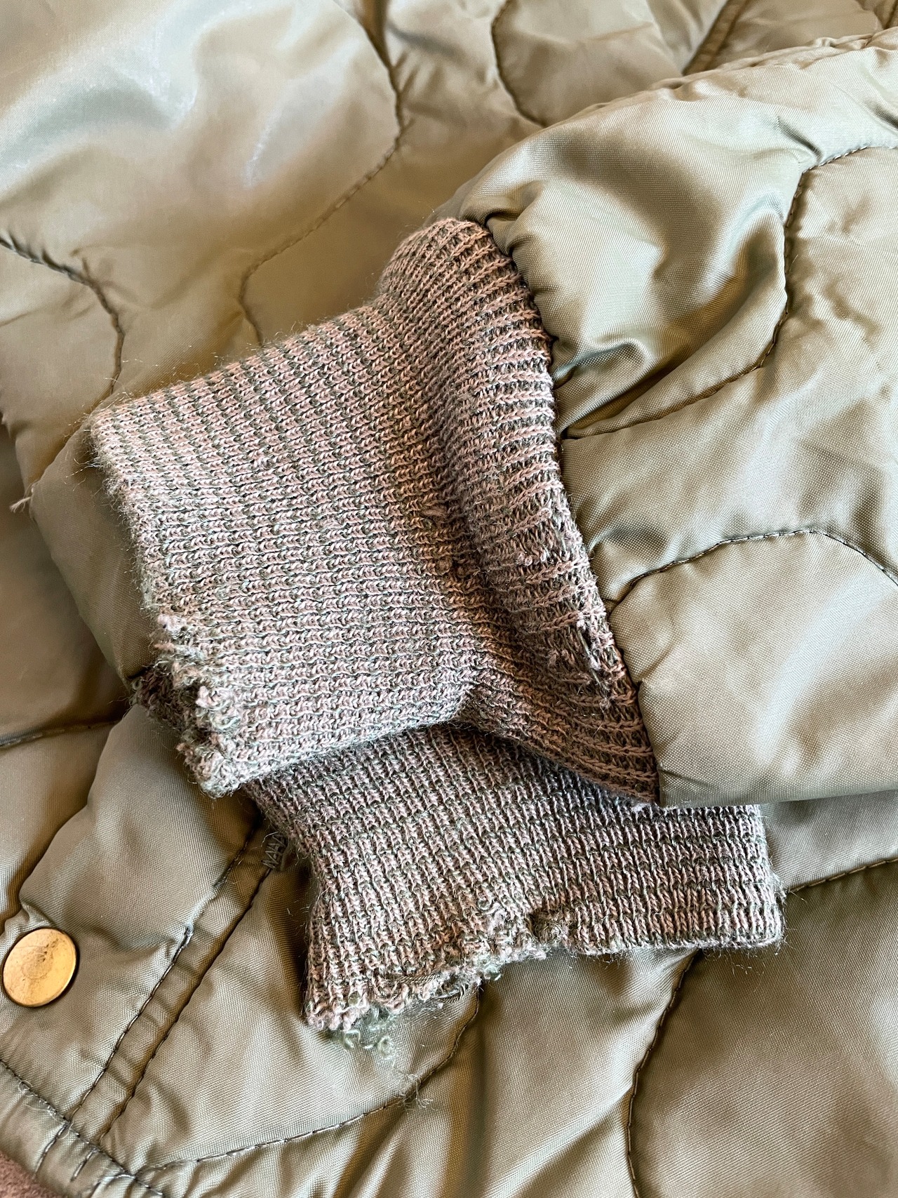 古着特有の使用感、リブやキルティング