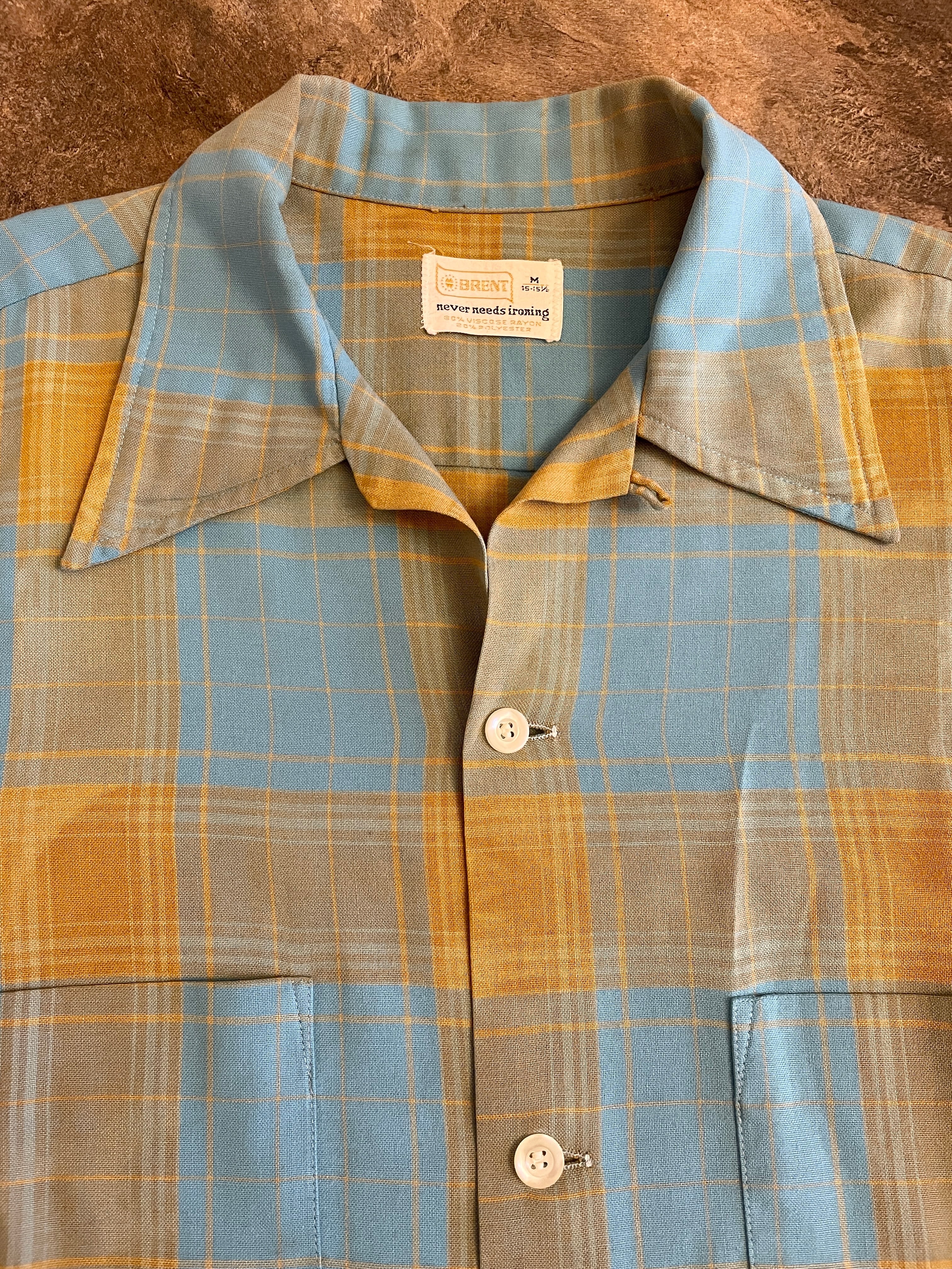 60s BRENT vintage オープンカラー レーヨンシャツ レアカラーM