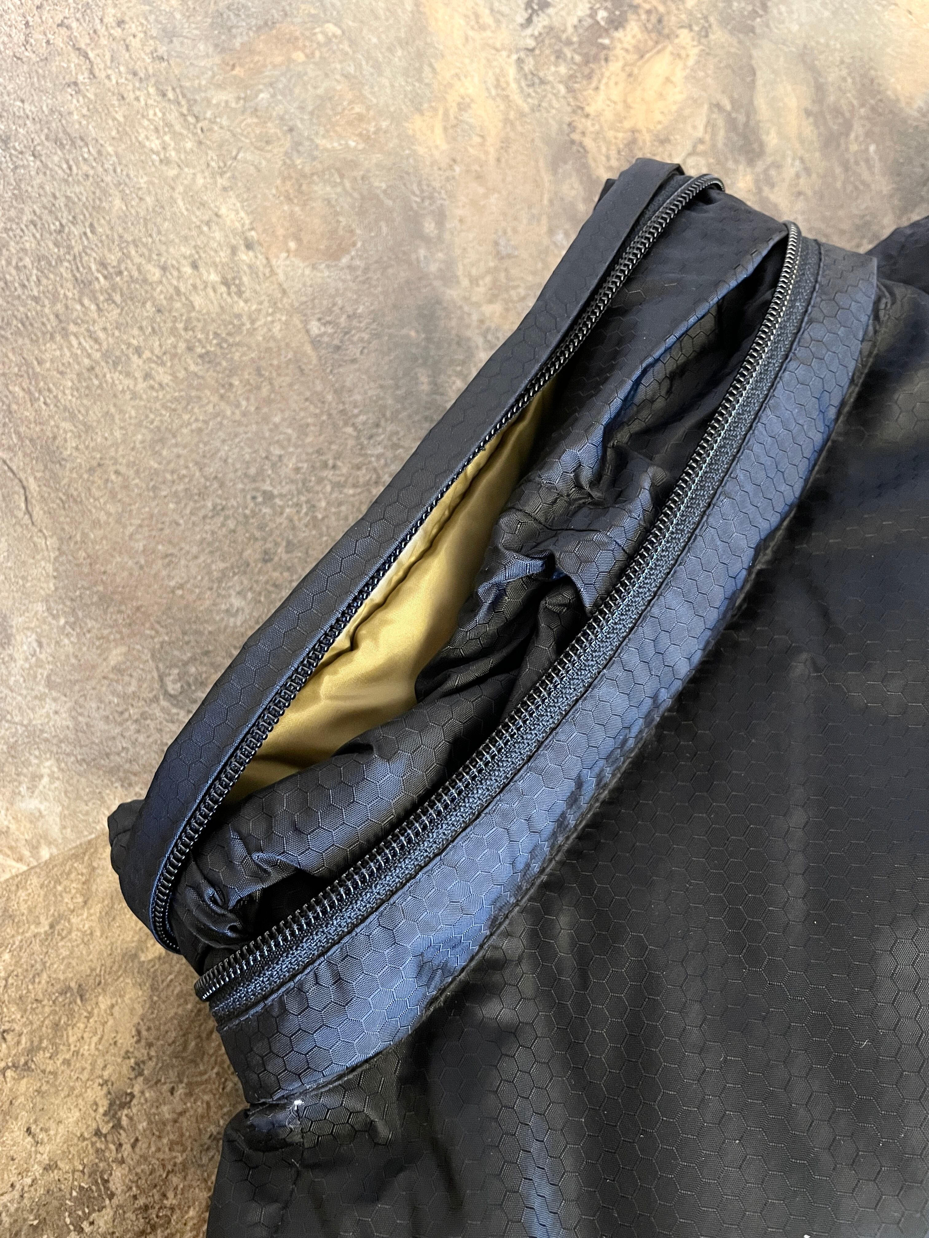 ナップサックやリュックサックなどに使われることの多いハニカム(蜂の巣)模様のナイロン生地使用。