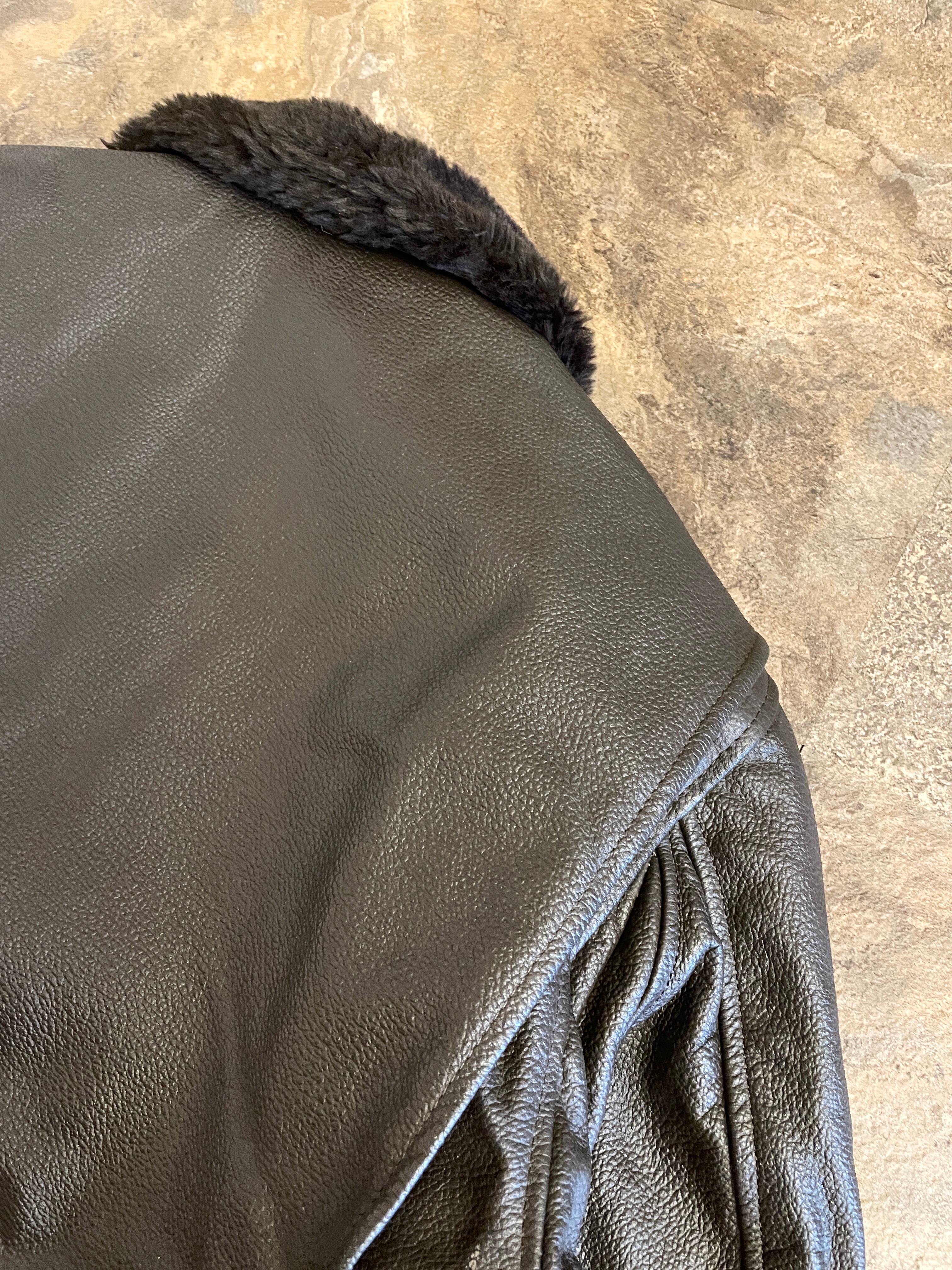 強い風が吹き付ける船の甲板から飛び立つパイロットを守るために、首元のボアやゴートスキン(山羊革)→カウハイド(牝牛の革)が使われました。