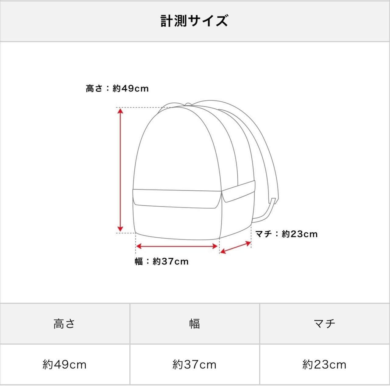 本体:サイズ:W370×H490×D230(mm)リュックストラップ:長さ 約 480〜880(mm)×幅 約 25〜85(mm) 誤差はご了承ください。