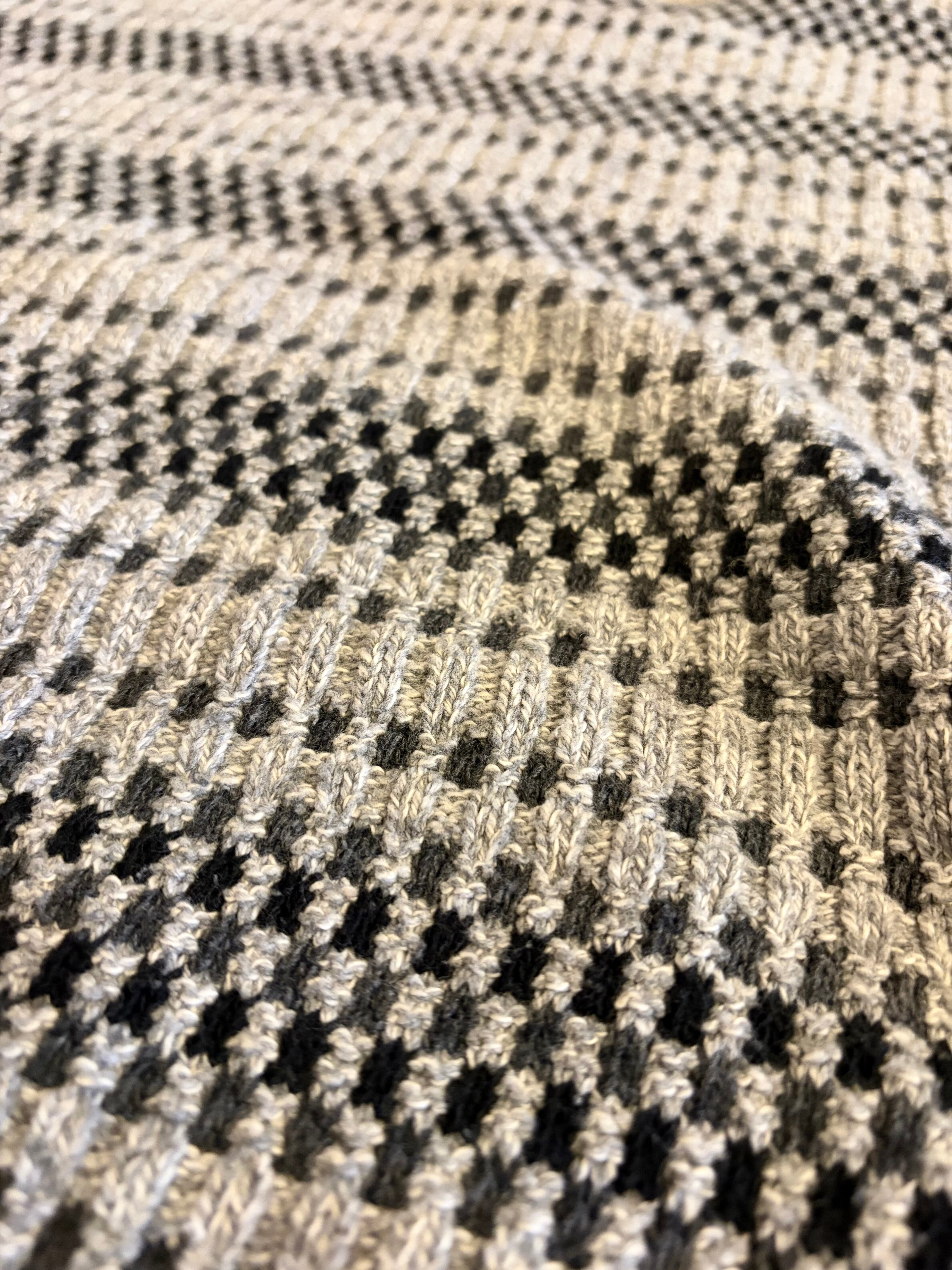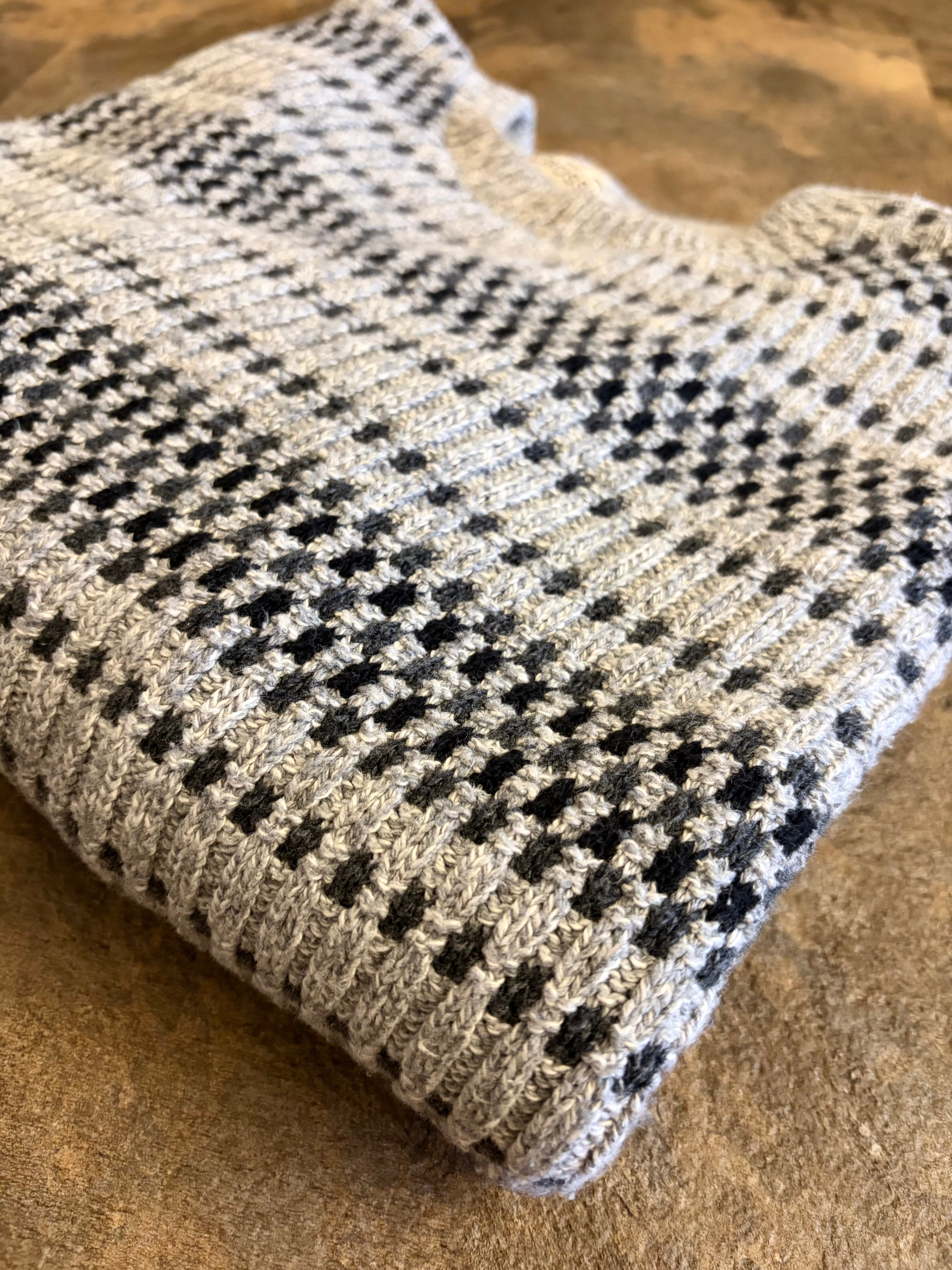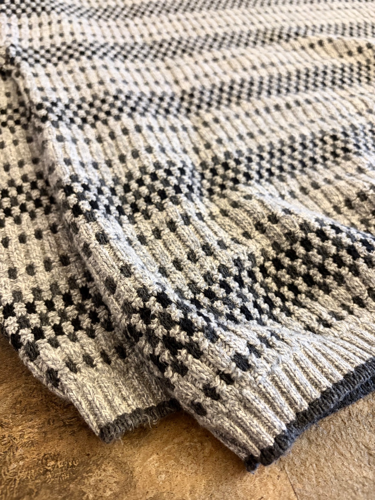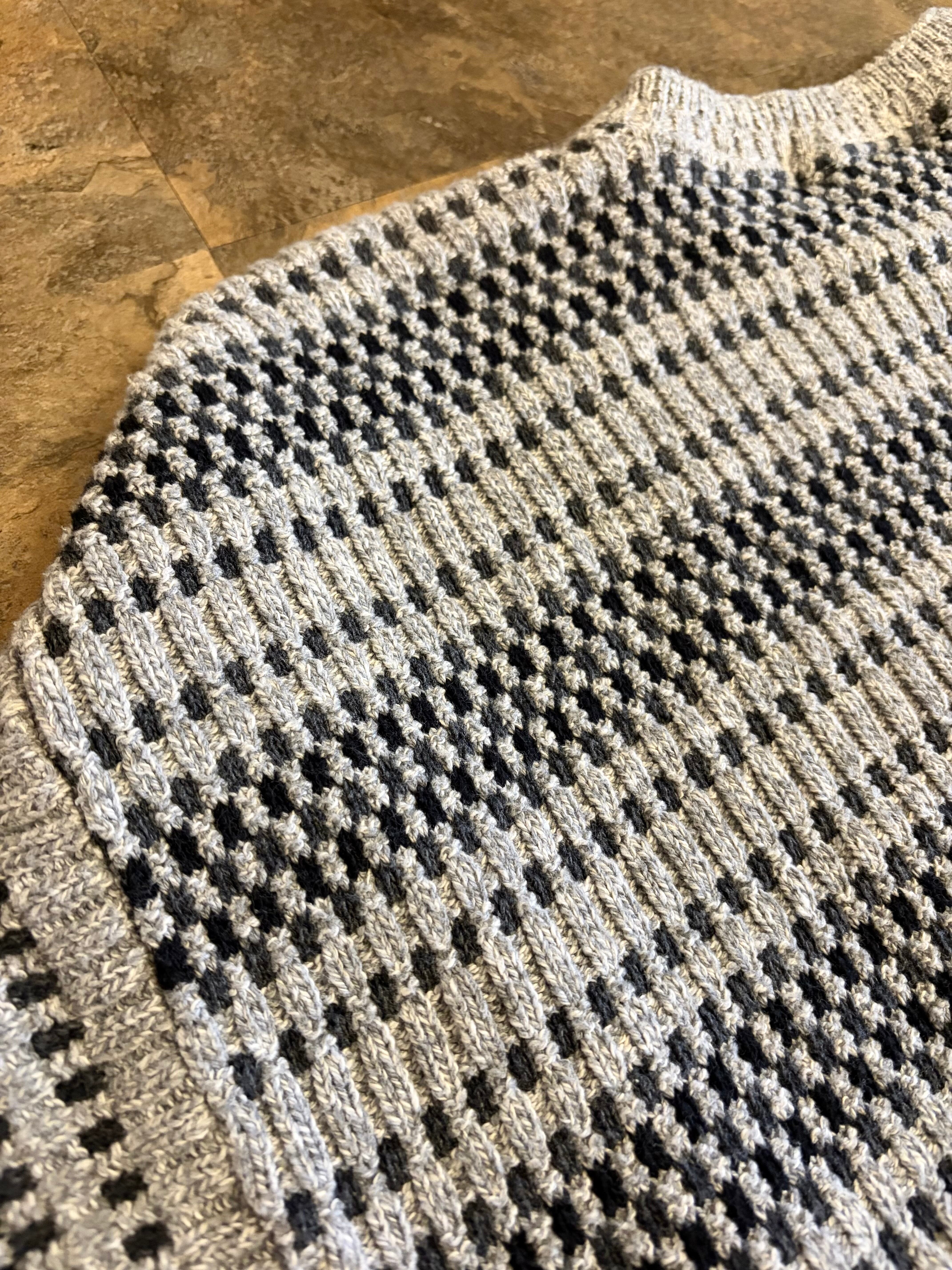 グレーベースで立体編みが上品な一着。