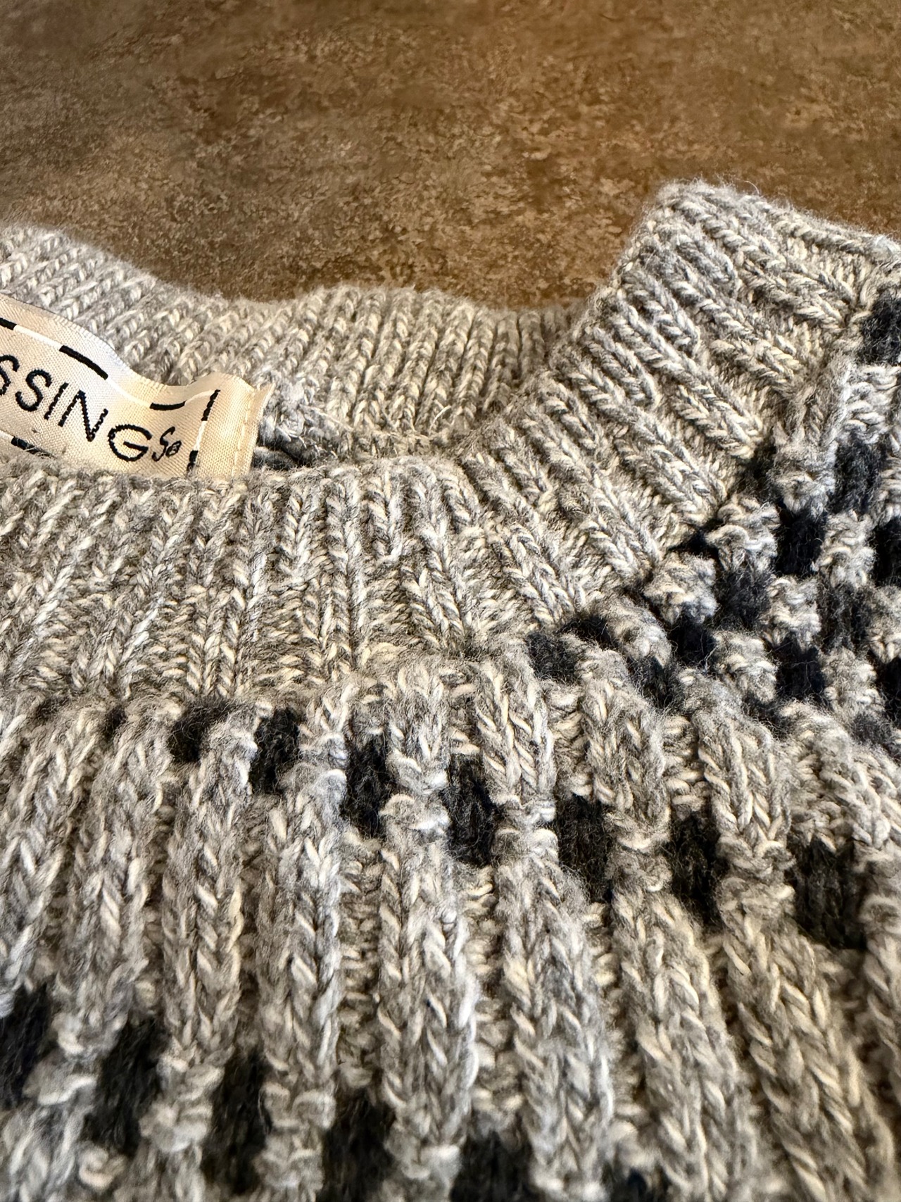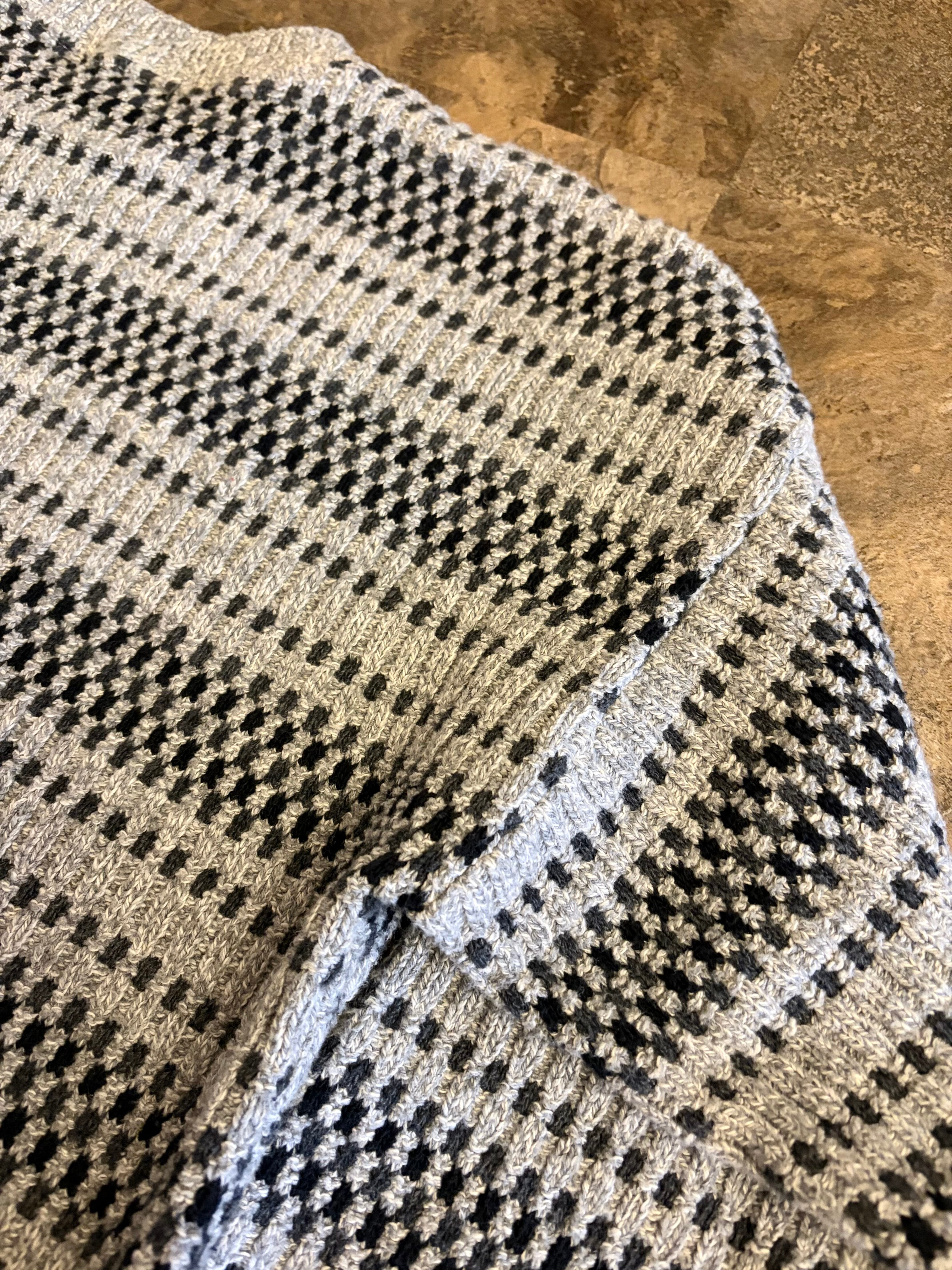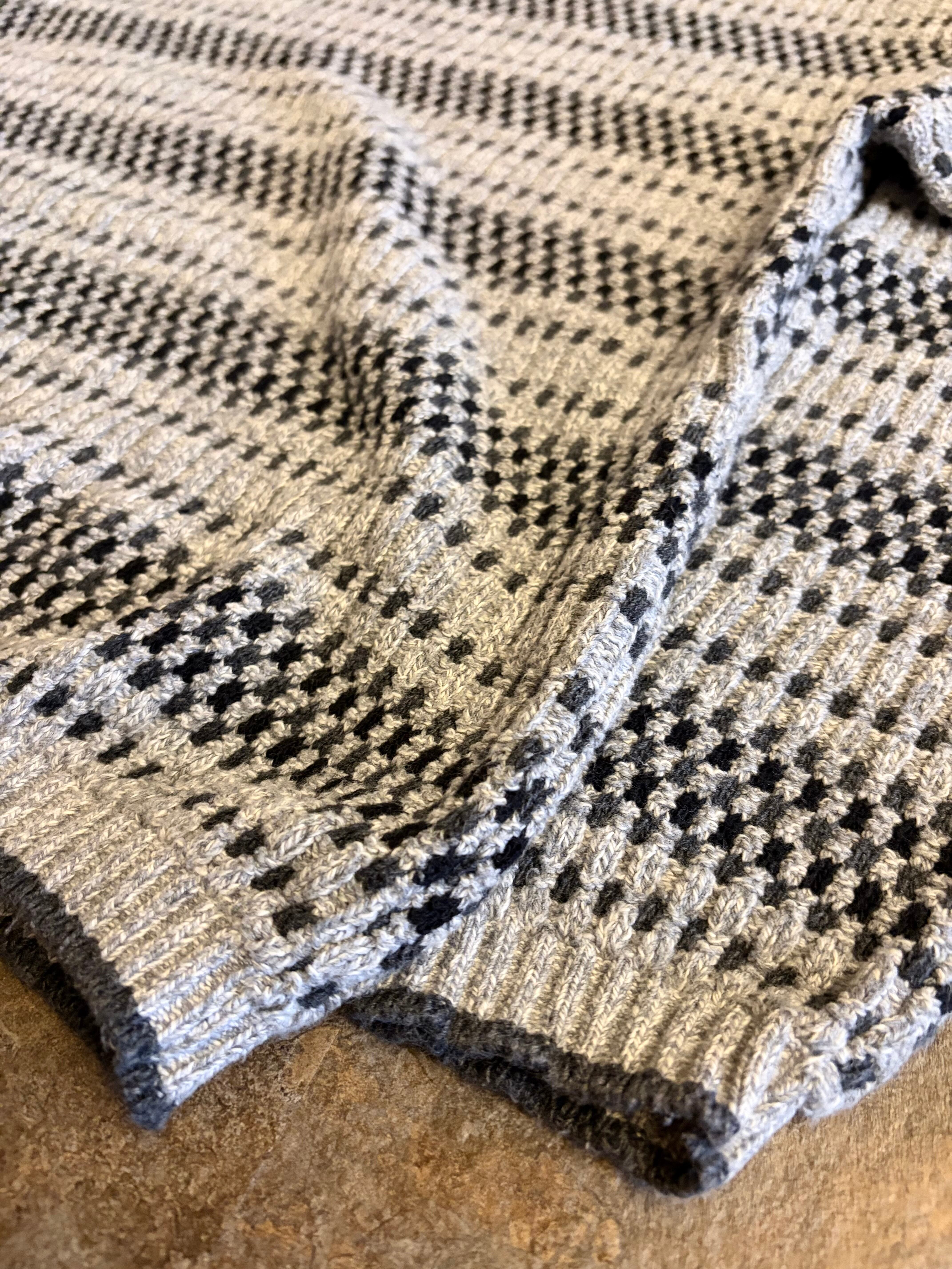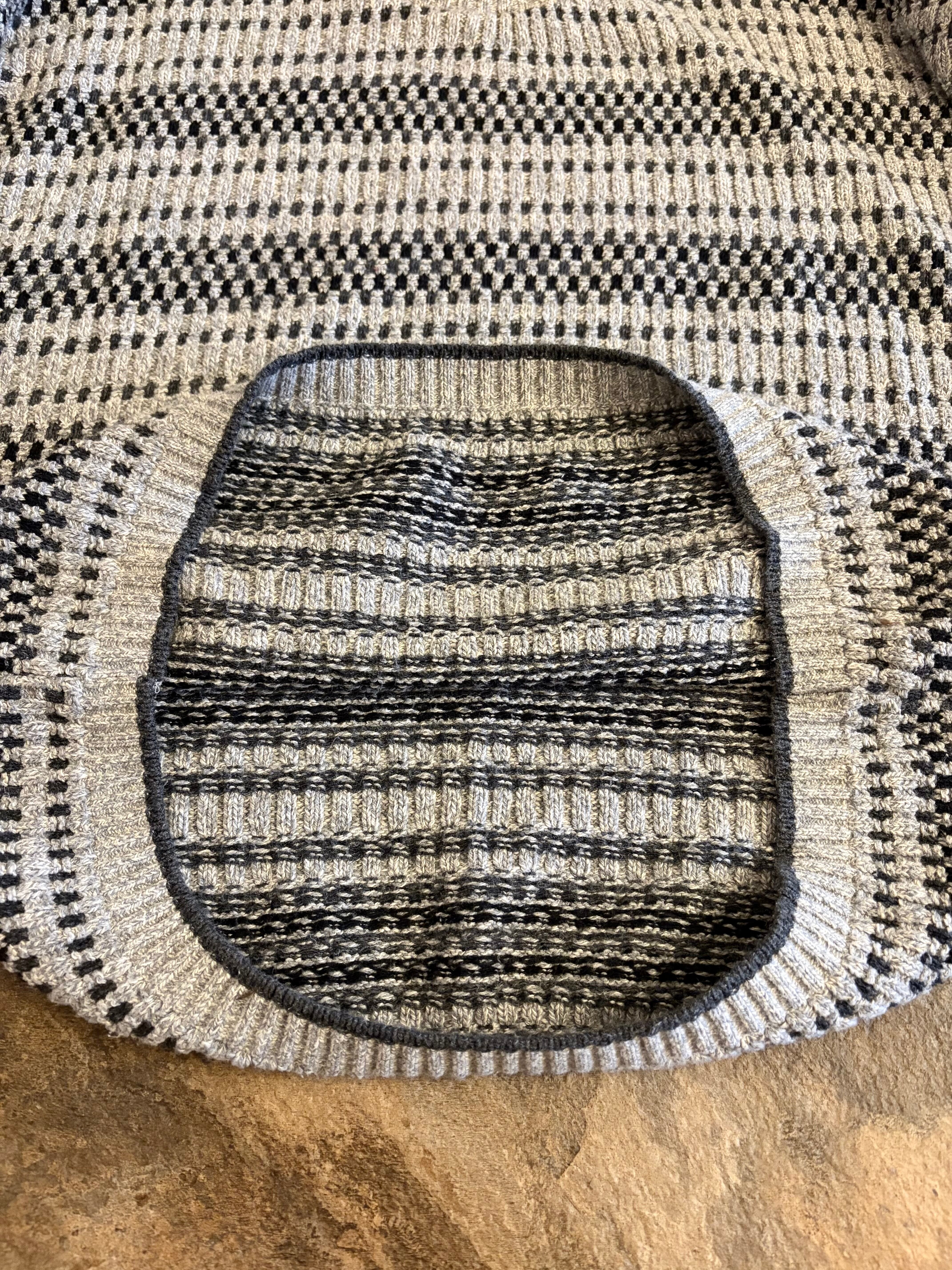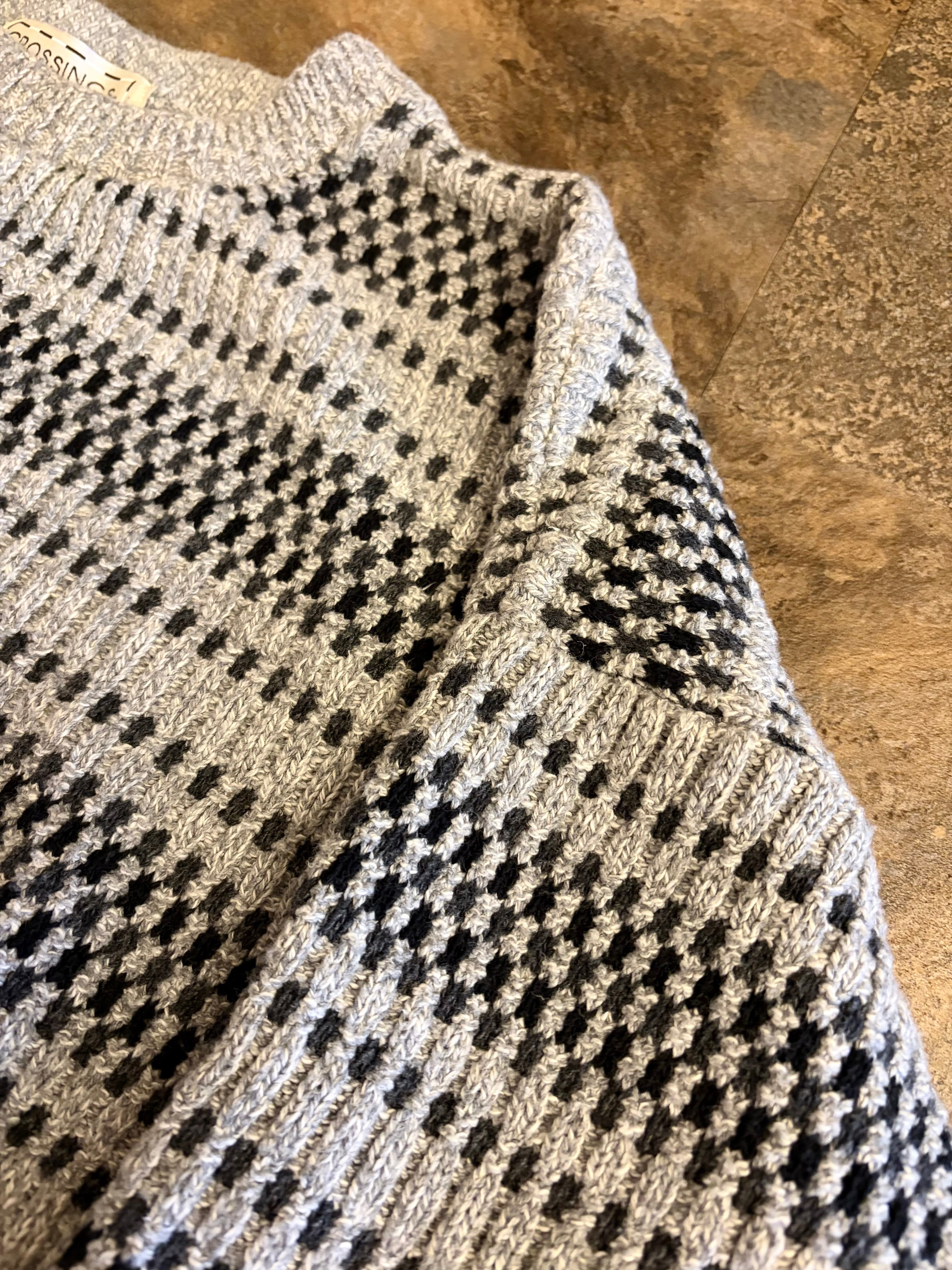グレーベースで立体編みが上品な一着。