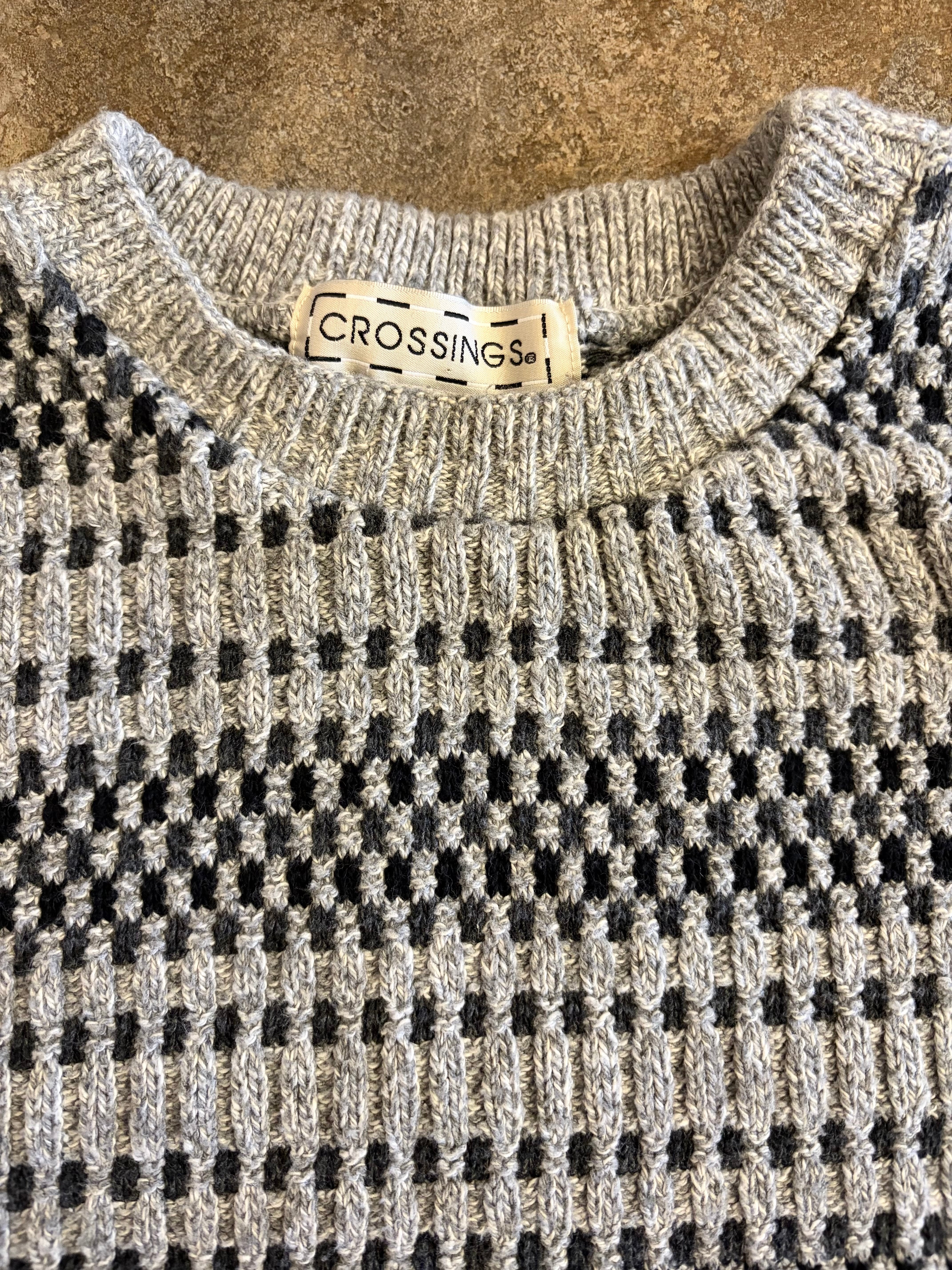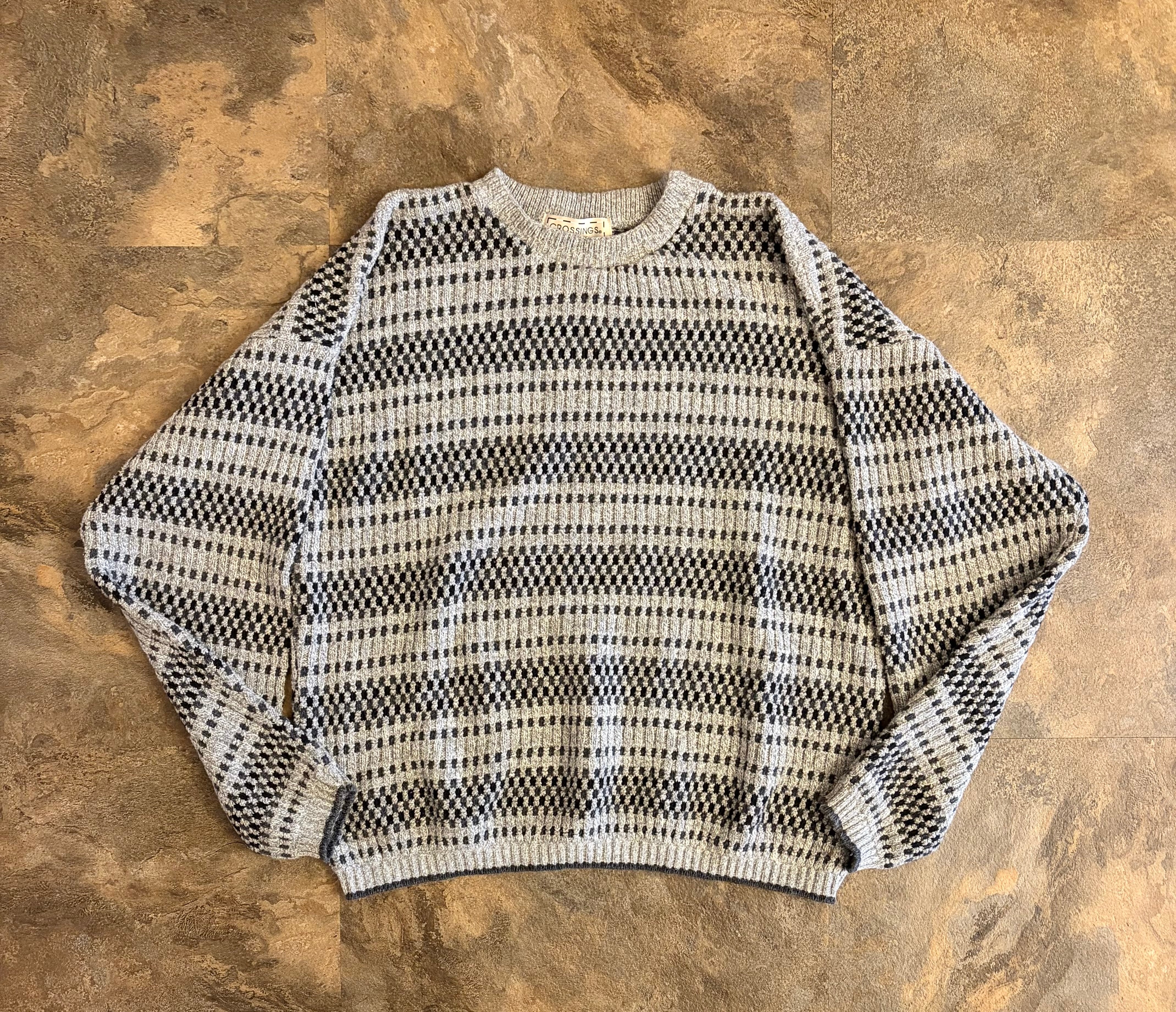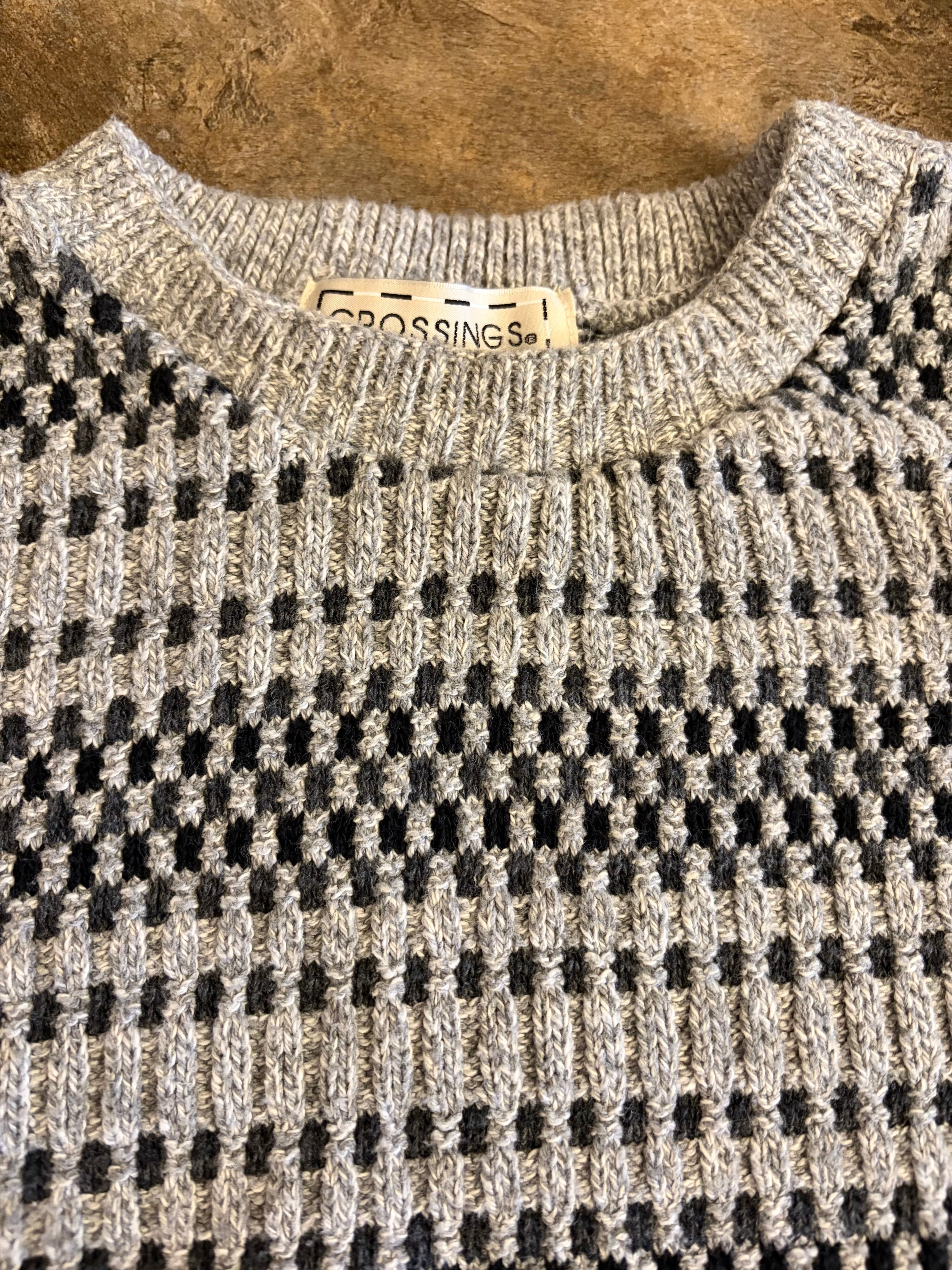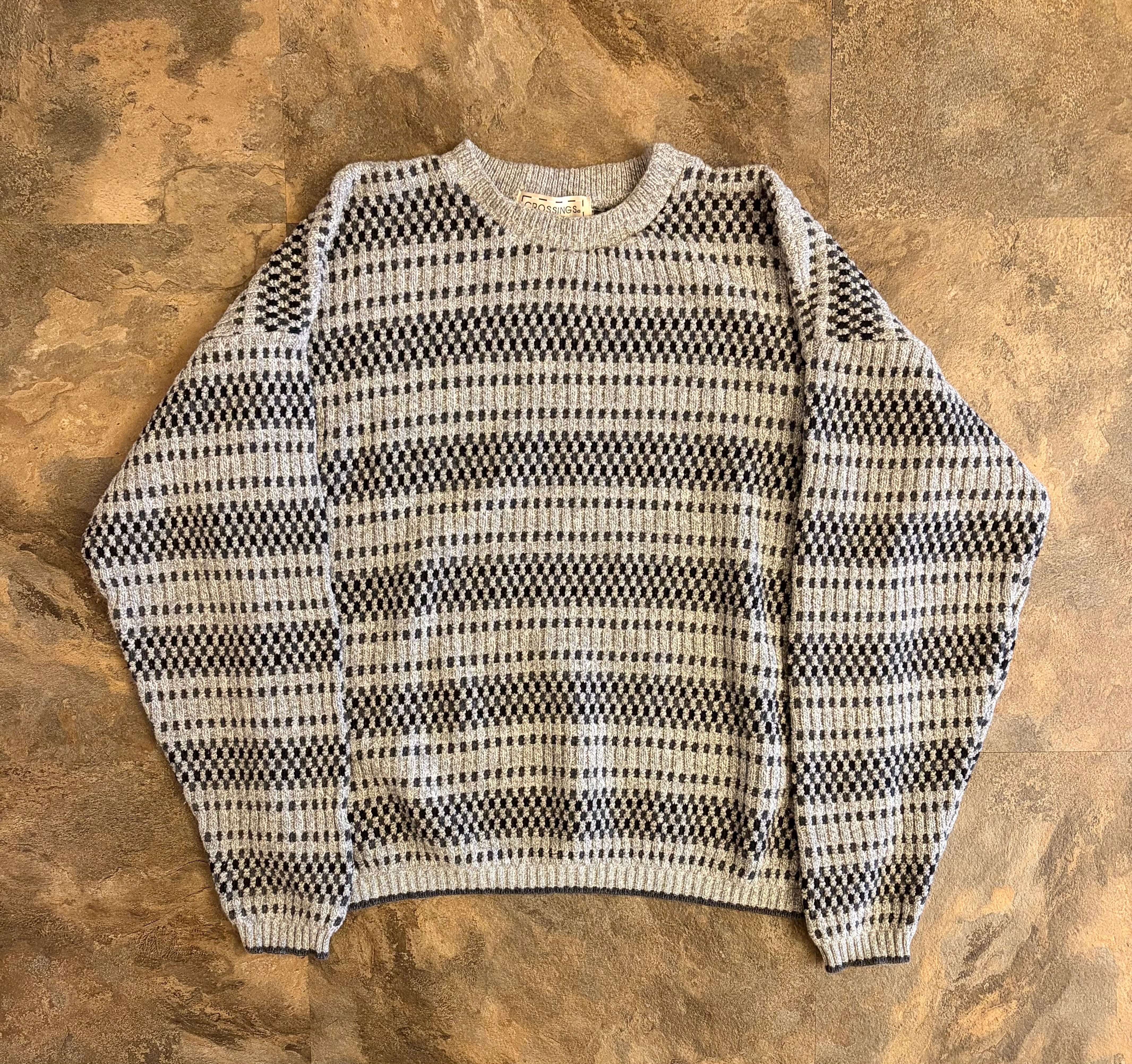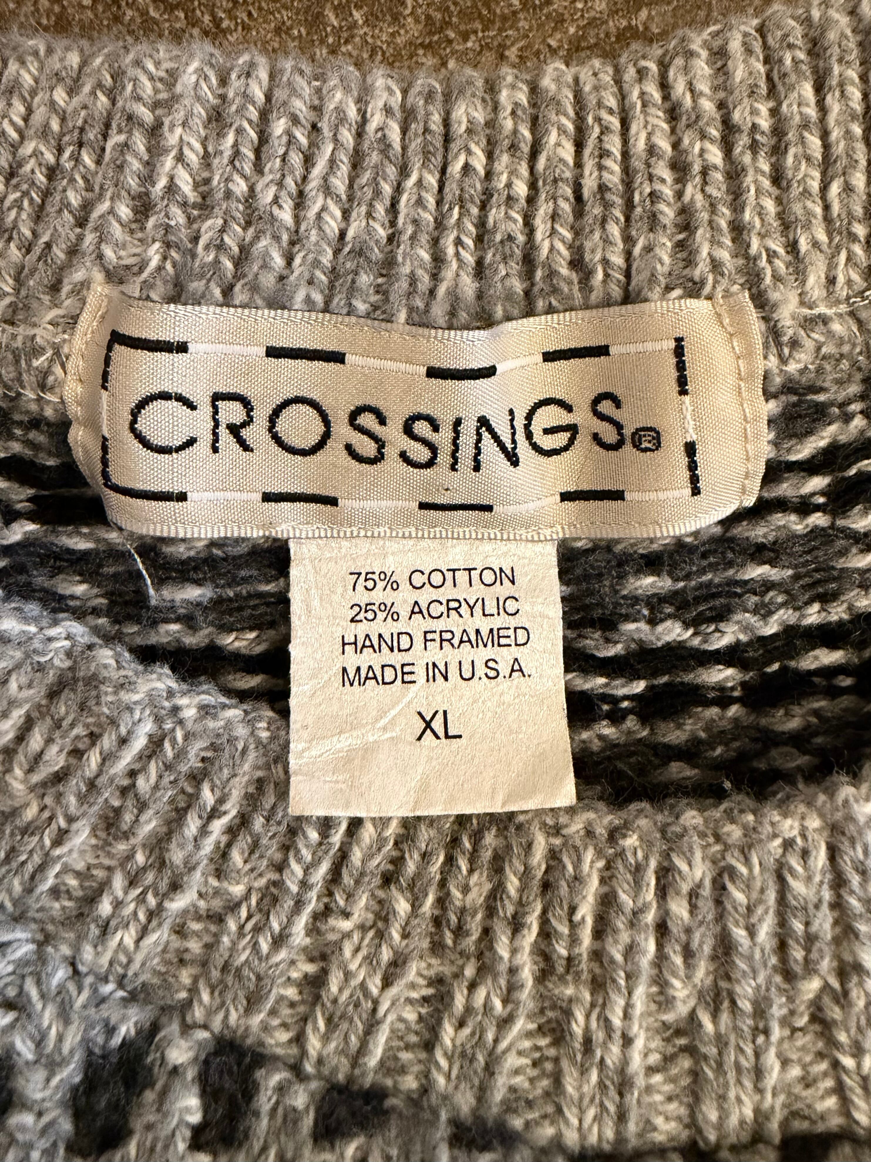 90s CROSSINGS USA製 コットン 総柄 エスニックニットセーター