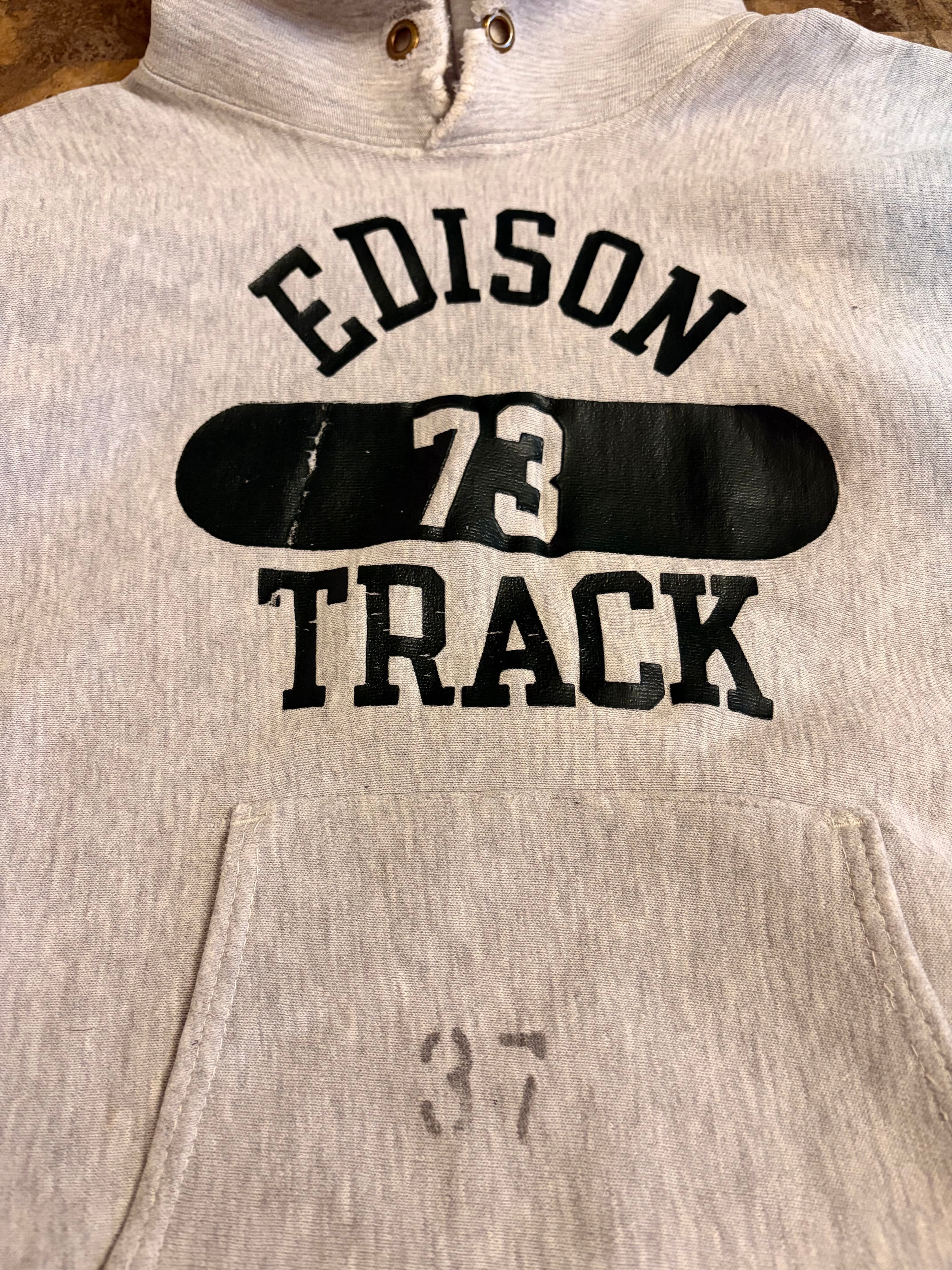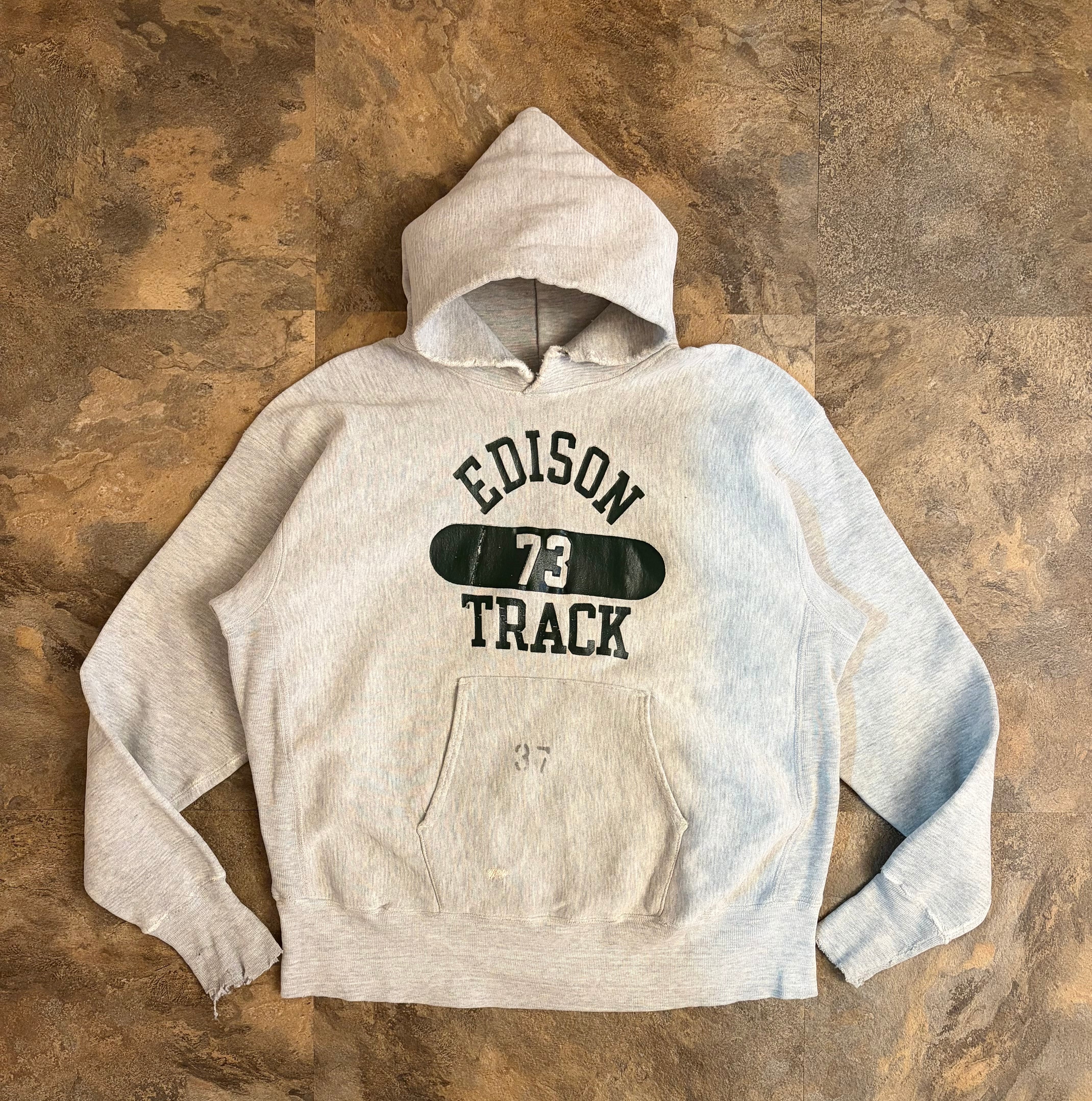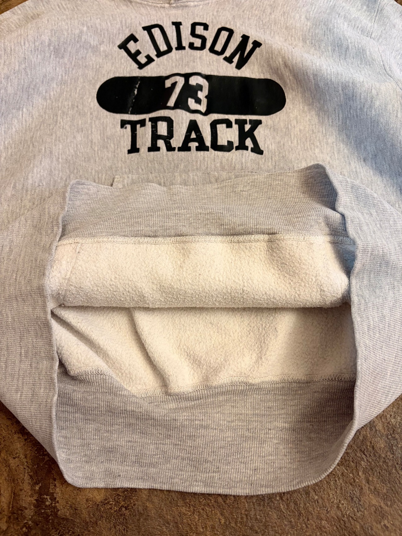 70年代、単色タグのリバースウィーブパーカー。