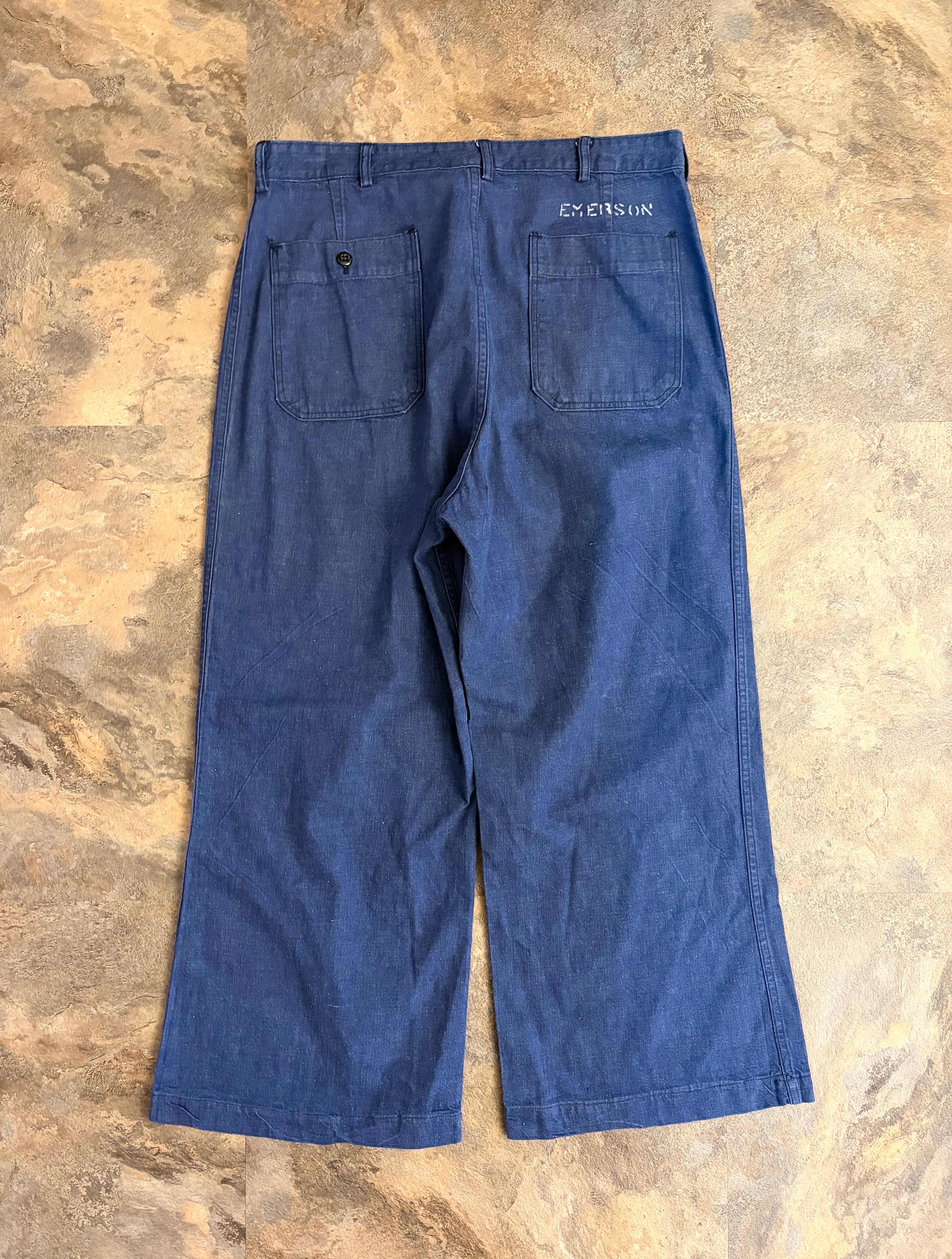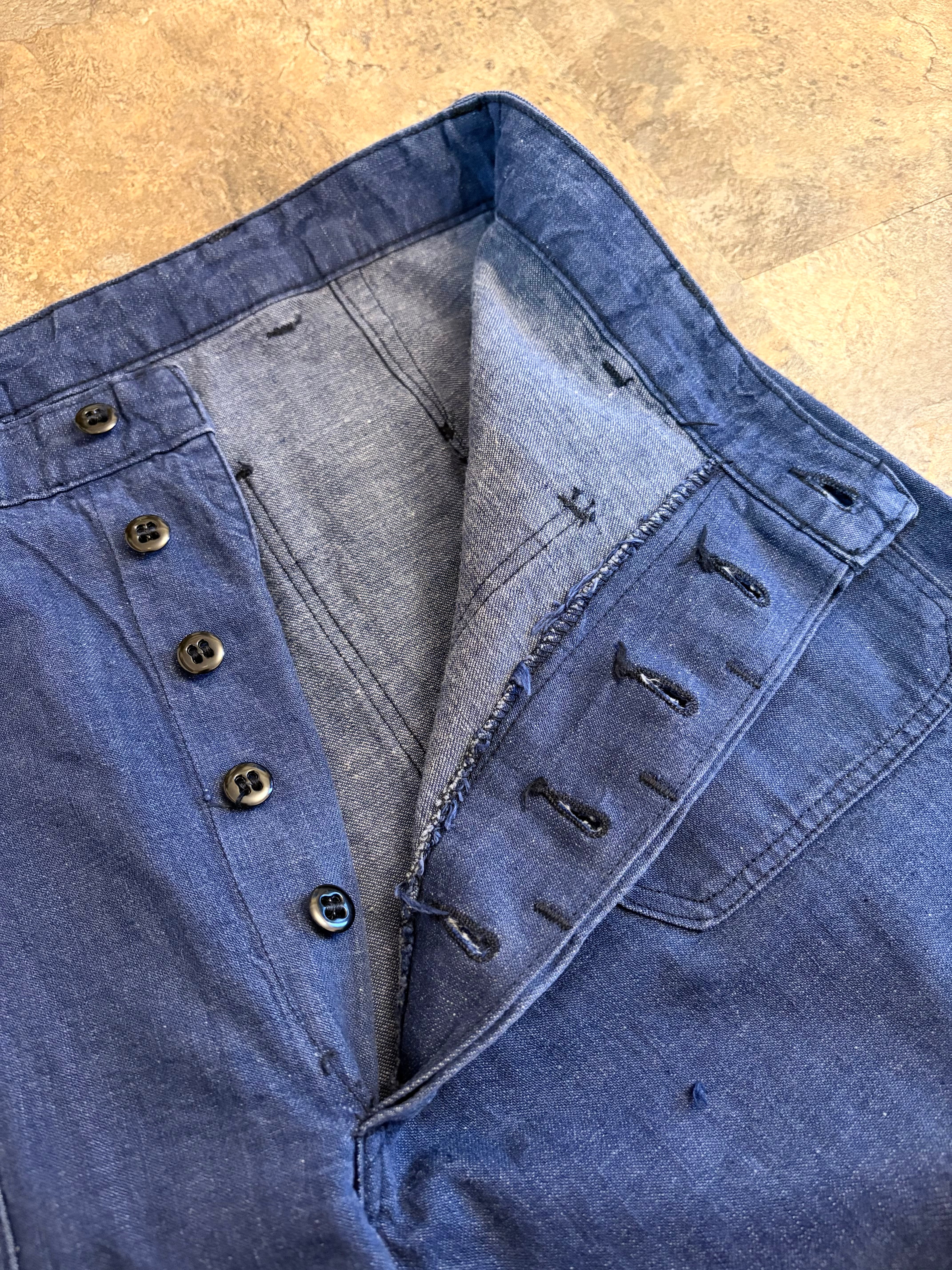 50〜60代頃のUSネイビー デニム ユーティリティ トラウザーズ。