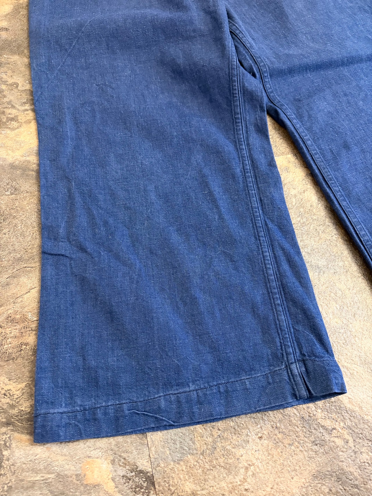 50年代後半から60年代にかけてアメリカ海軍で採用されたパンツで、インディゴの風合いが良く、60年代中頃から採用のサルファ系デニムとは違います。