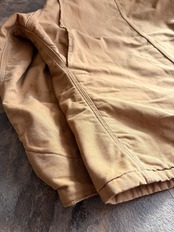 ブランケットの裏地も防寒性を高める役割を果たしており、「カーハート」のルーツがワークウェアという事を再認識させられるモデルです。