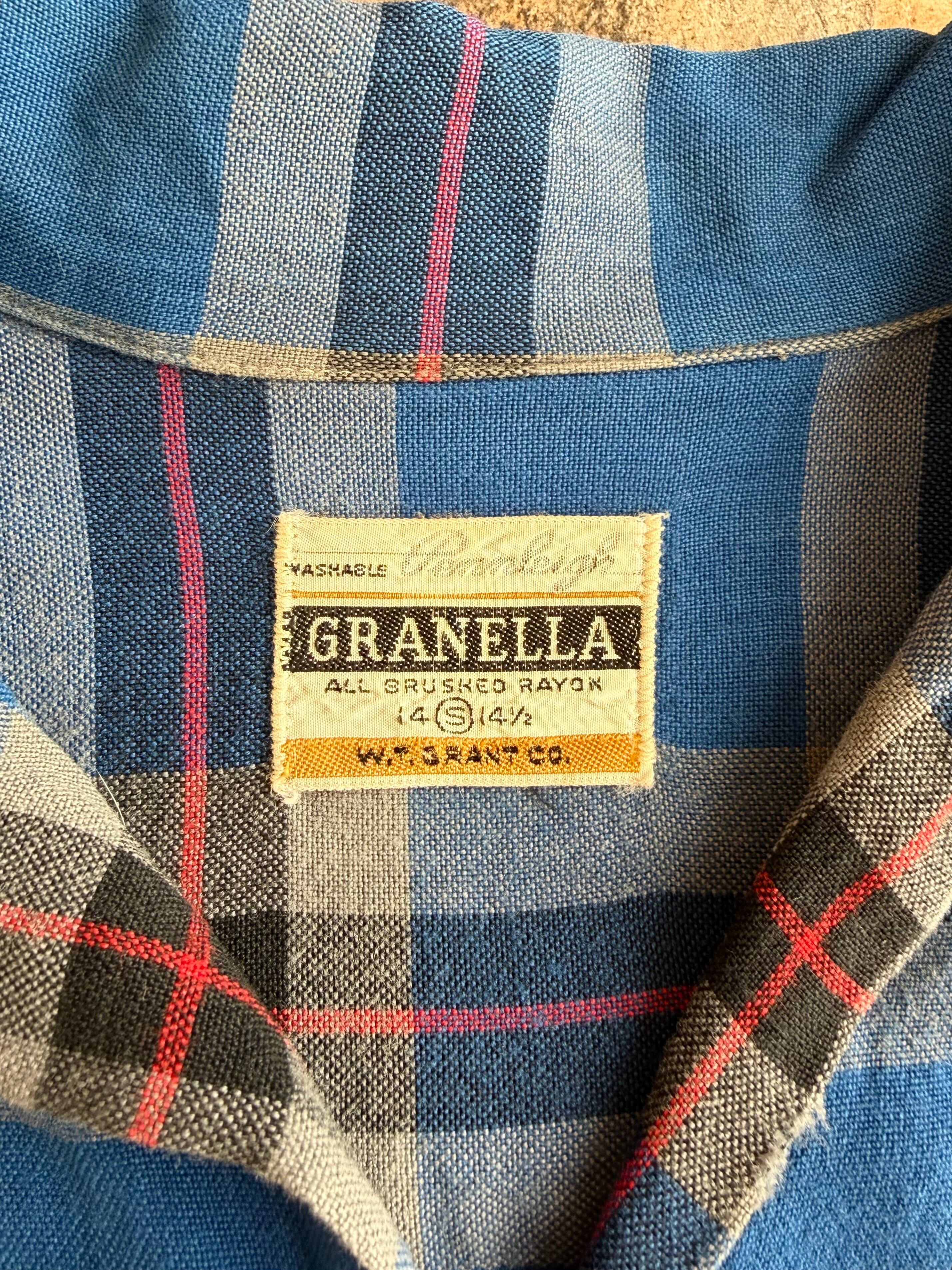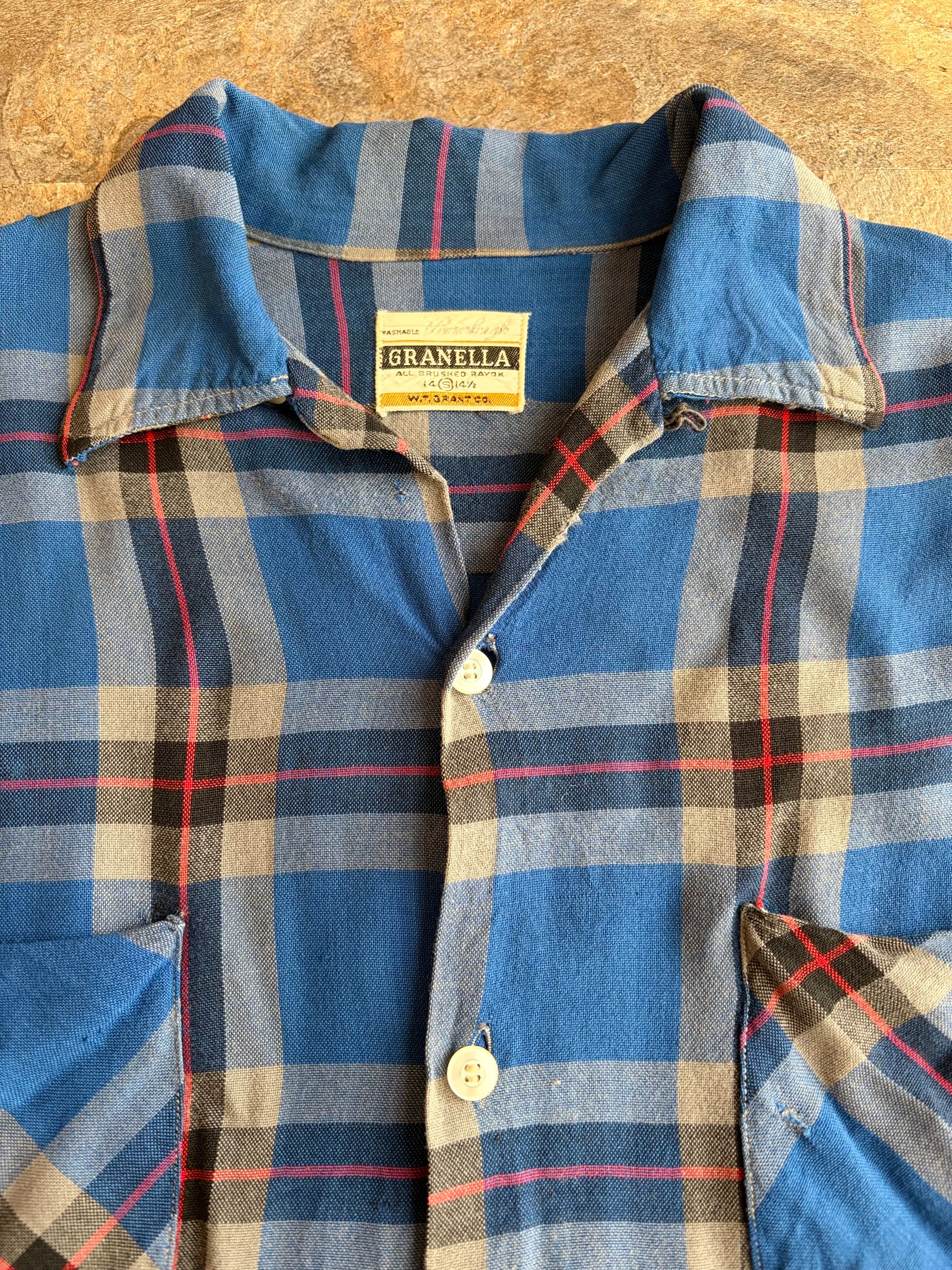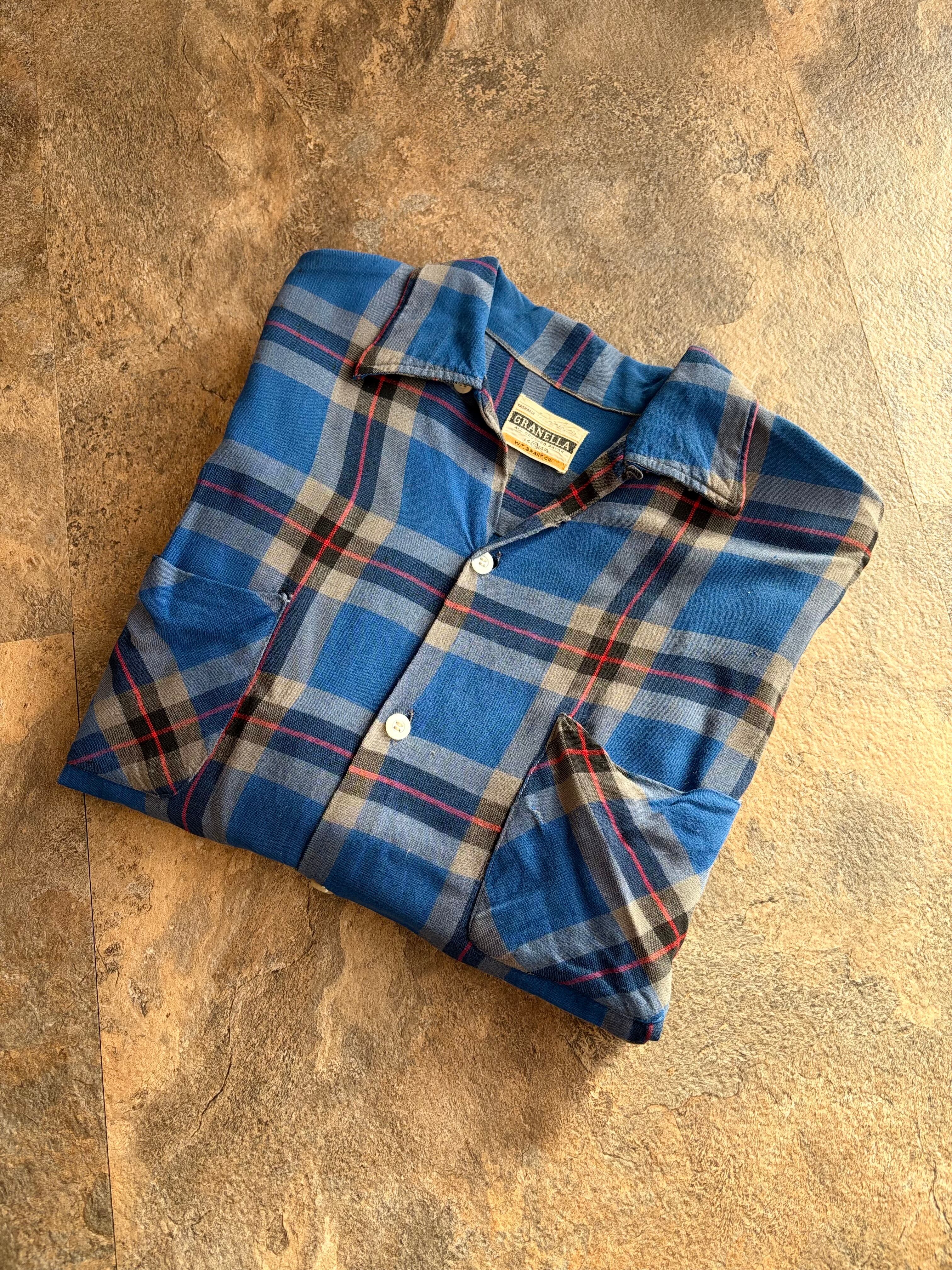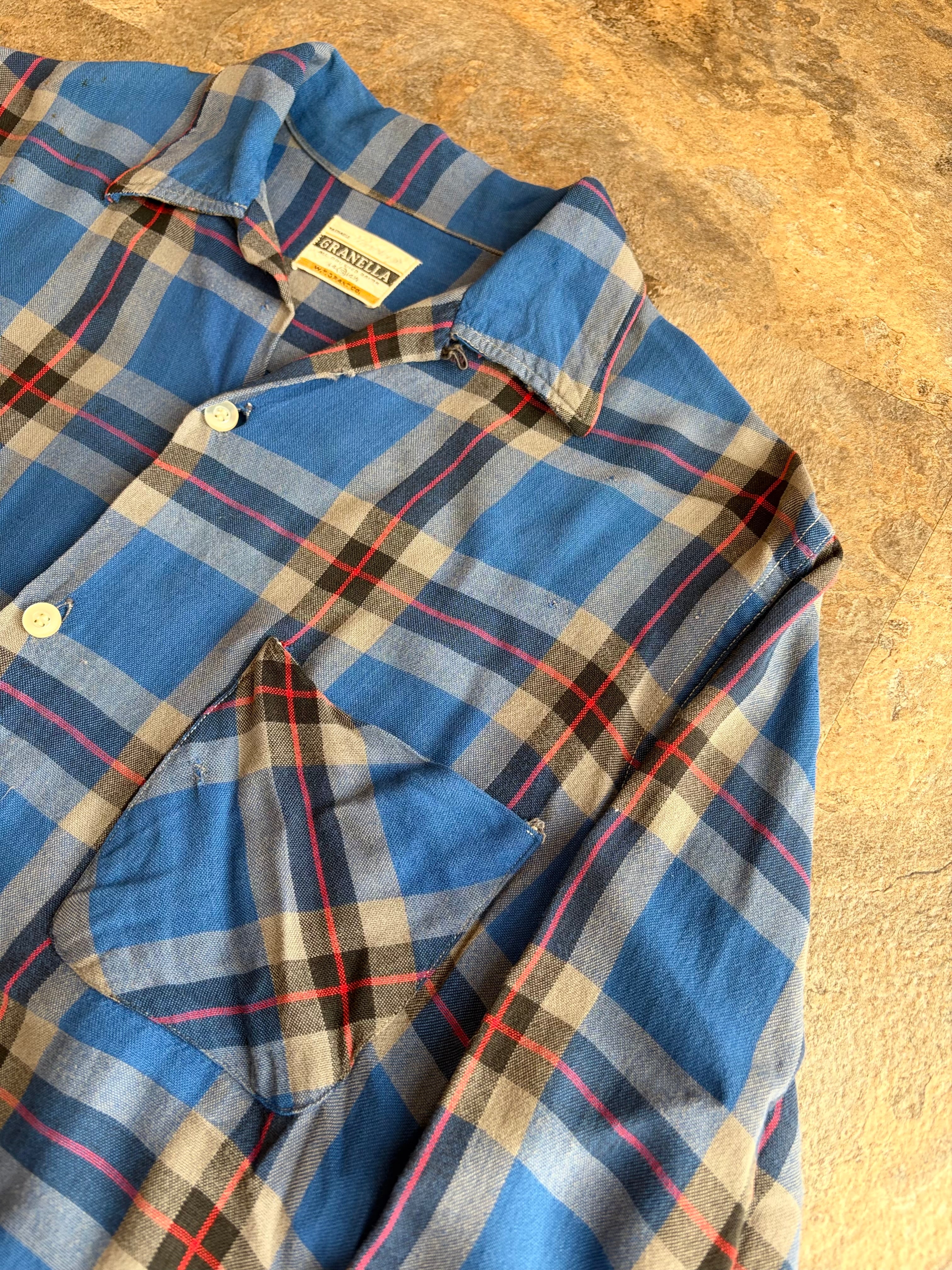 60s GRANELLA ヴィンテージ オープンカラーシャツ ブルーチェック
