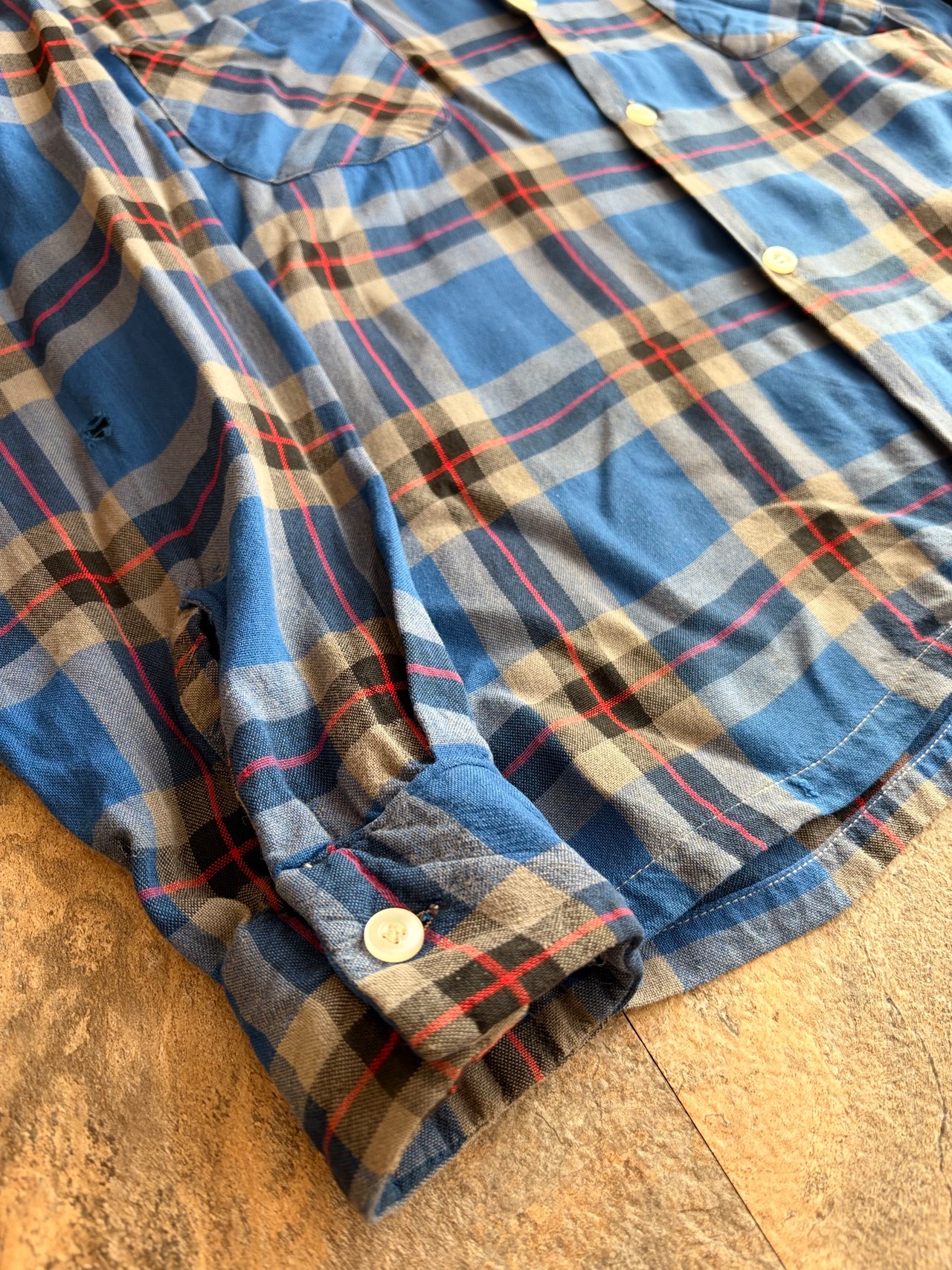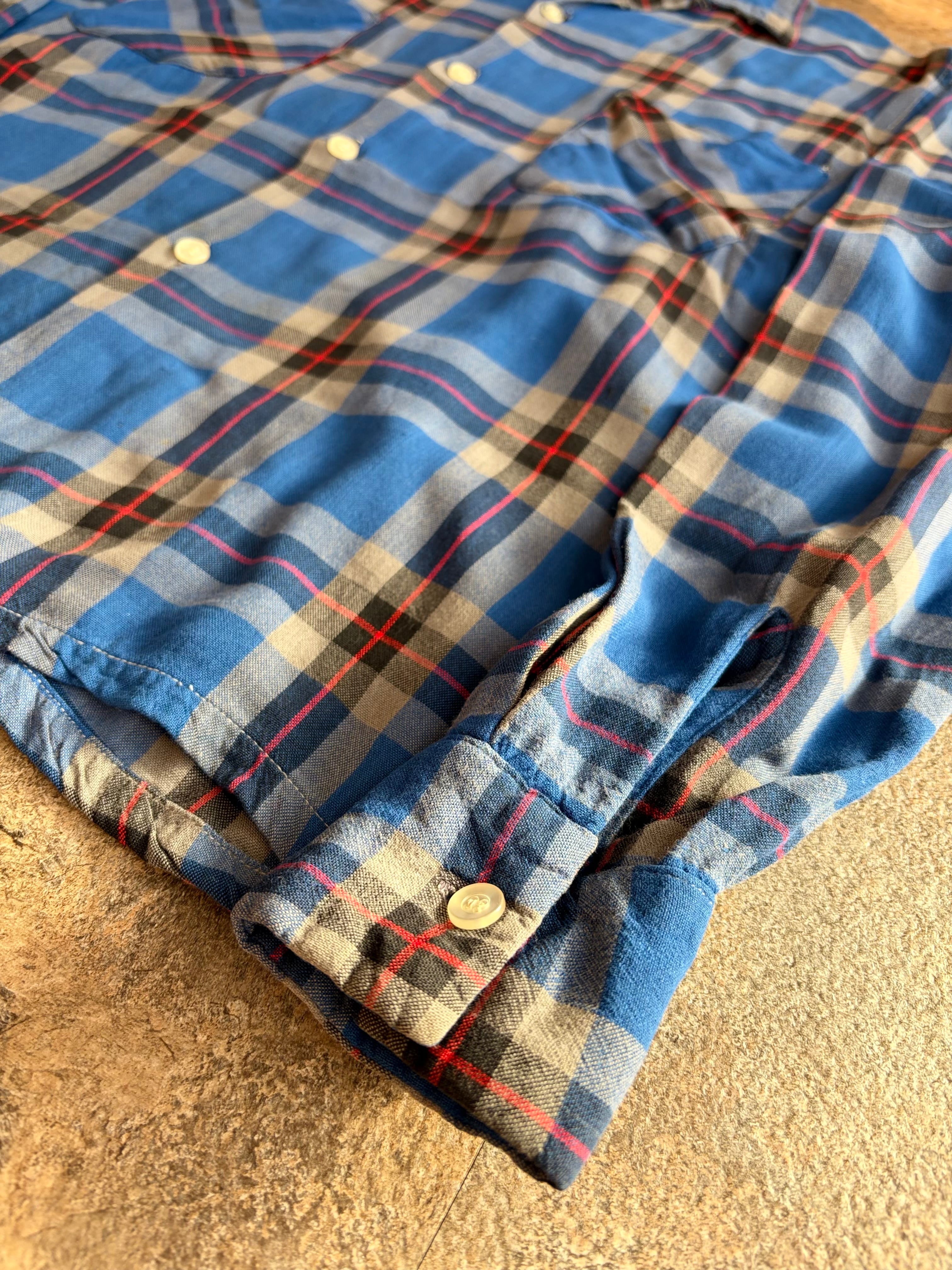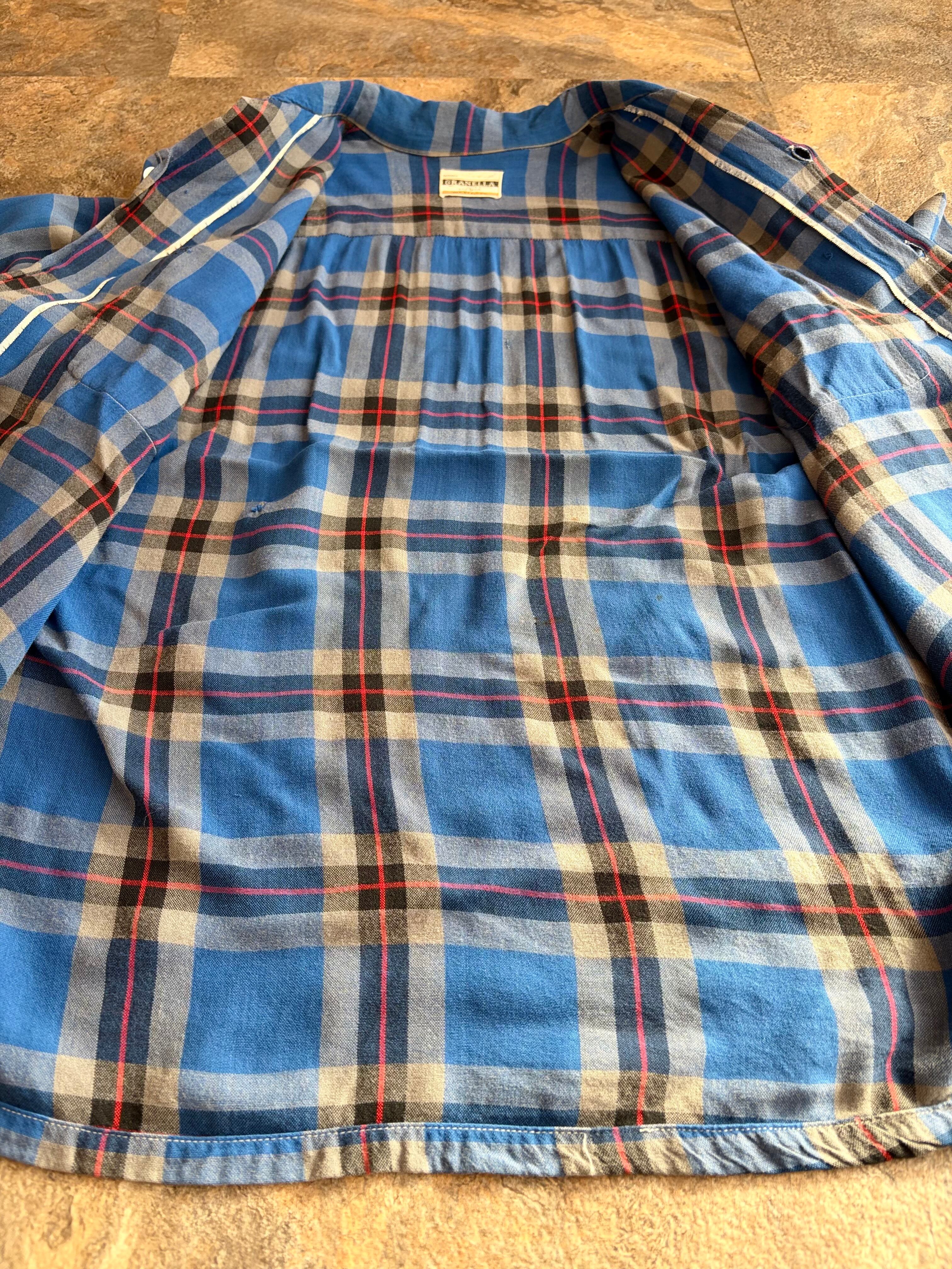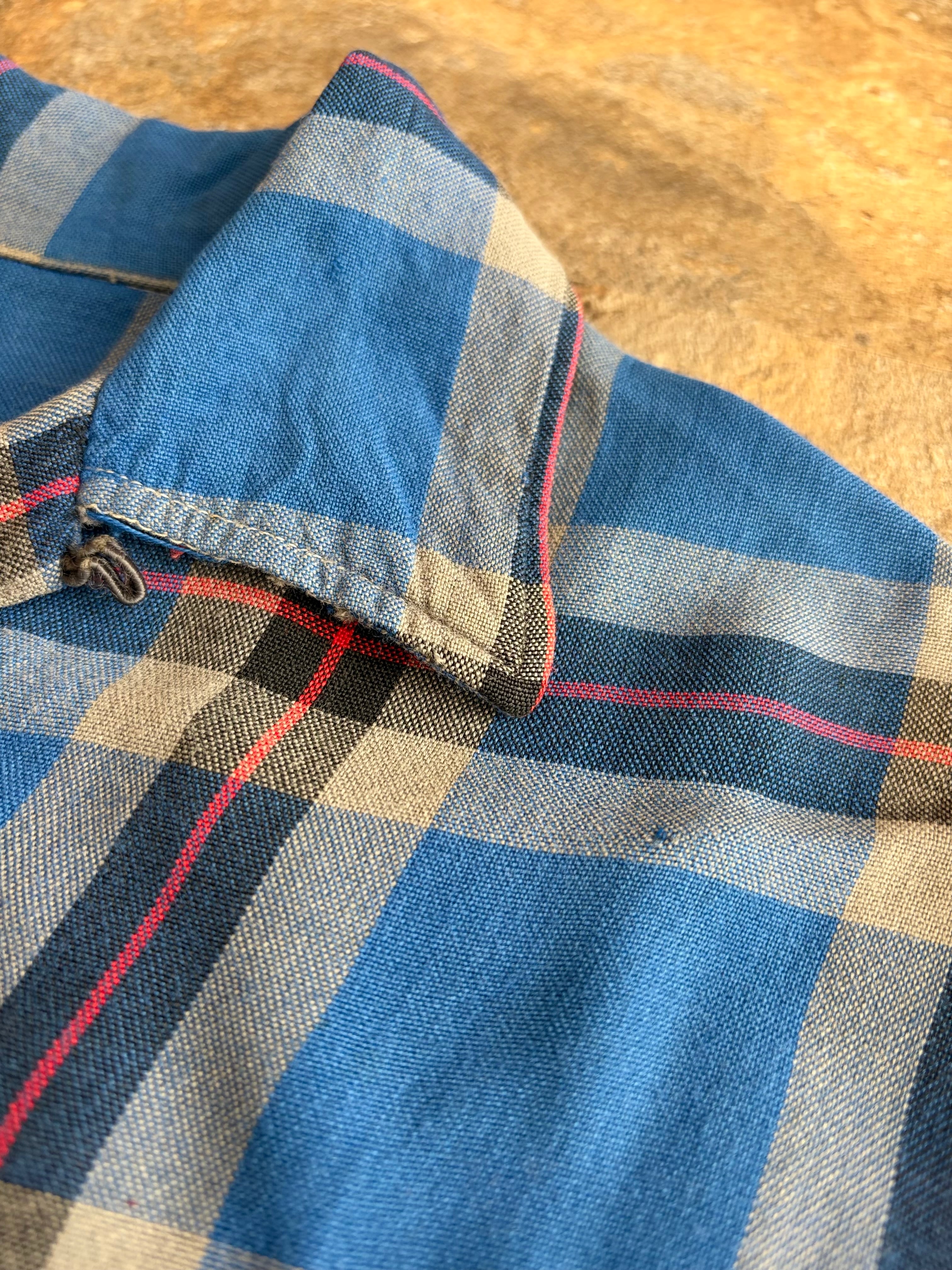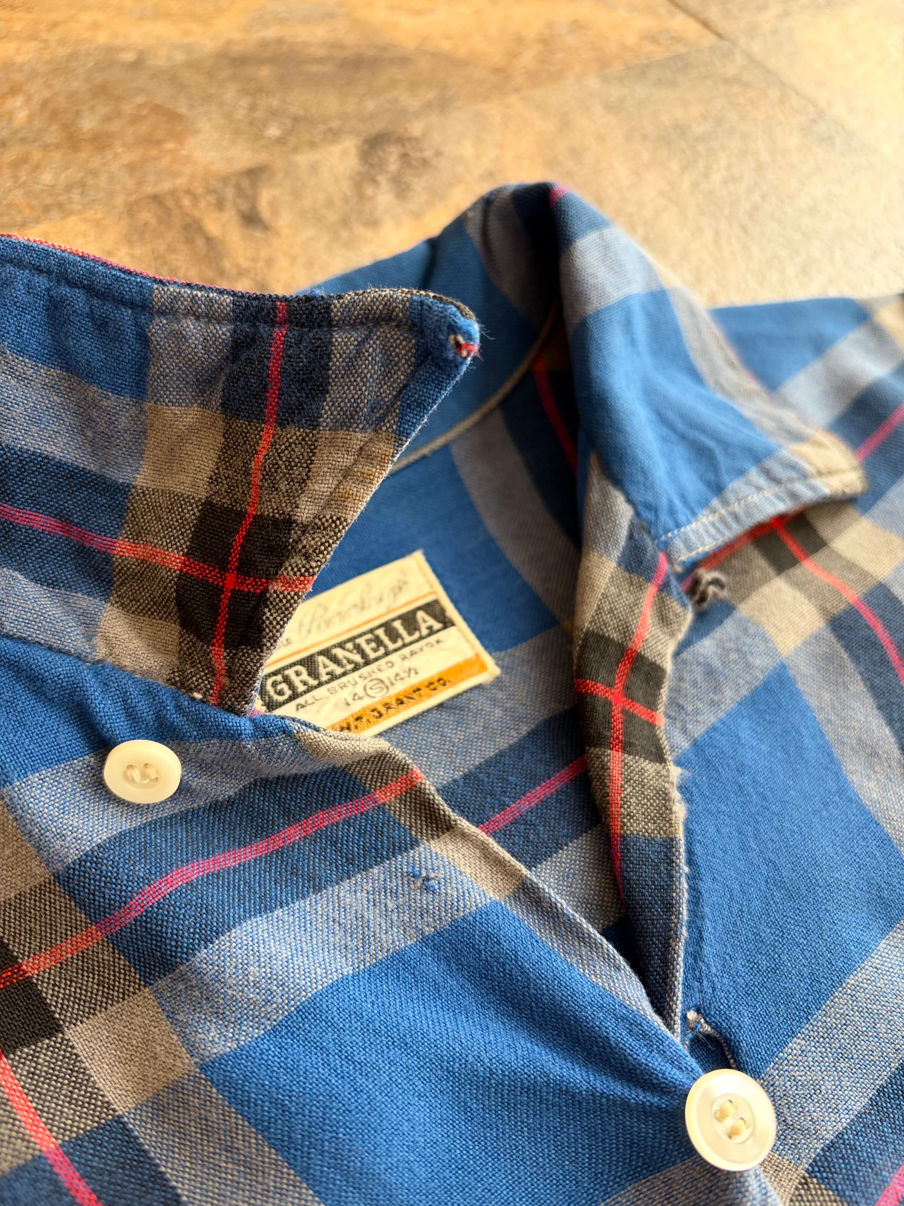 60s GRANELLA ヴィンテージ オープンカラーシャツ ブルーチェック