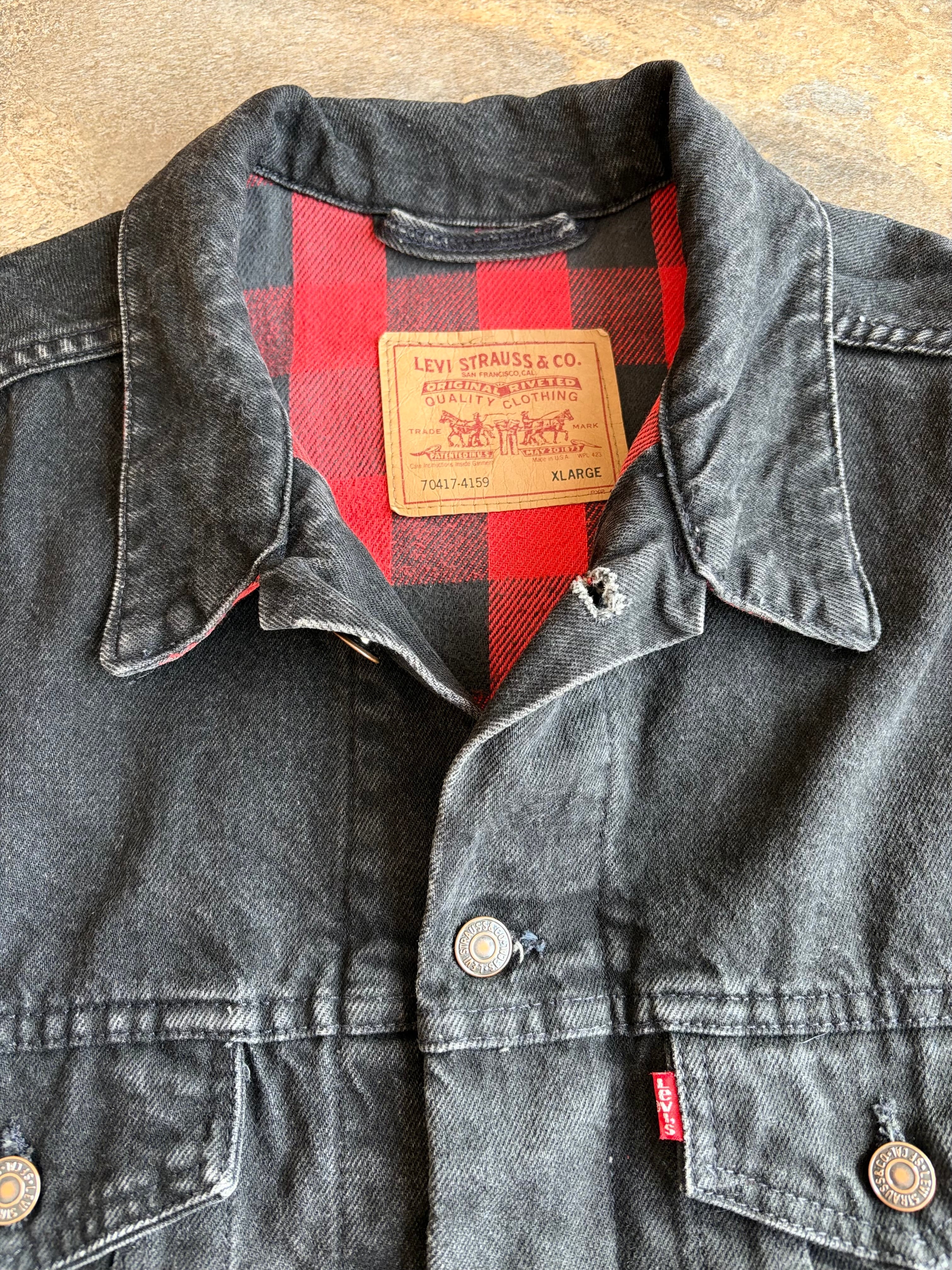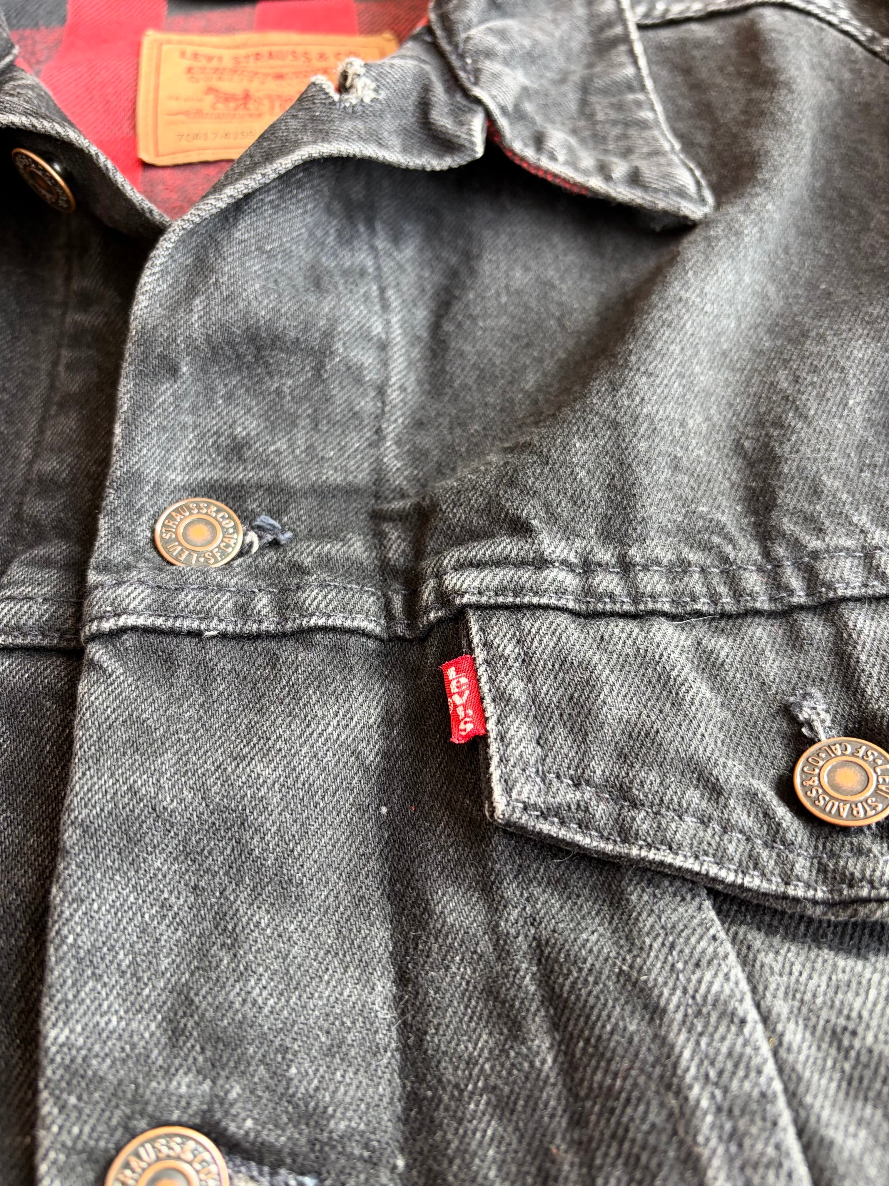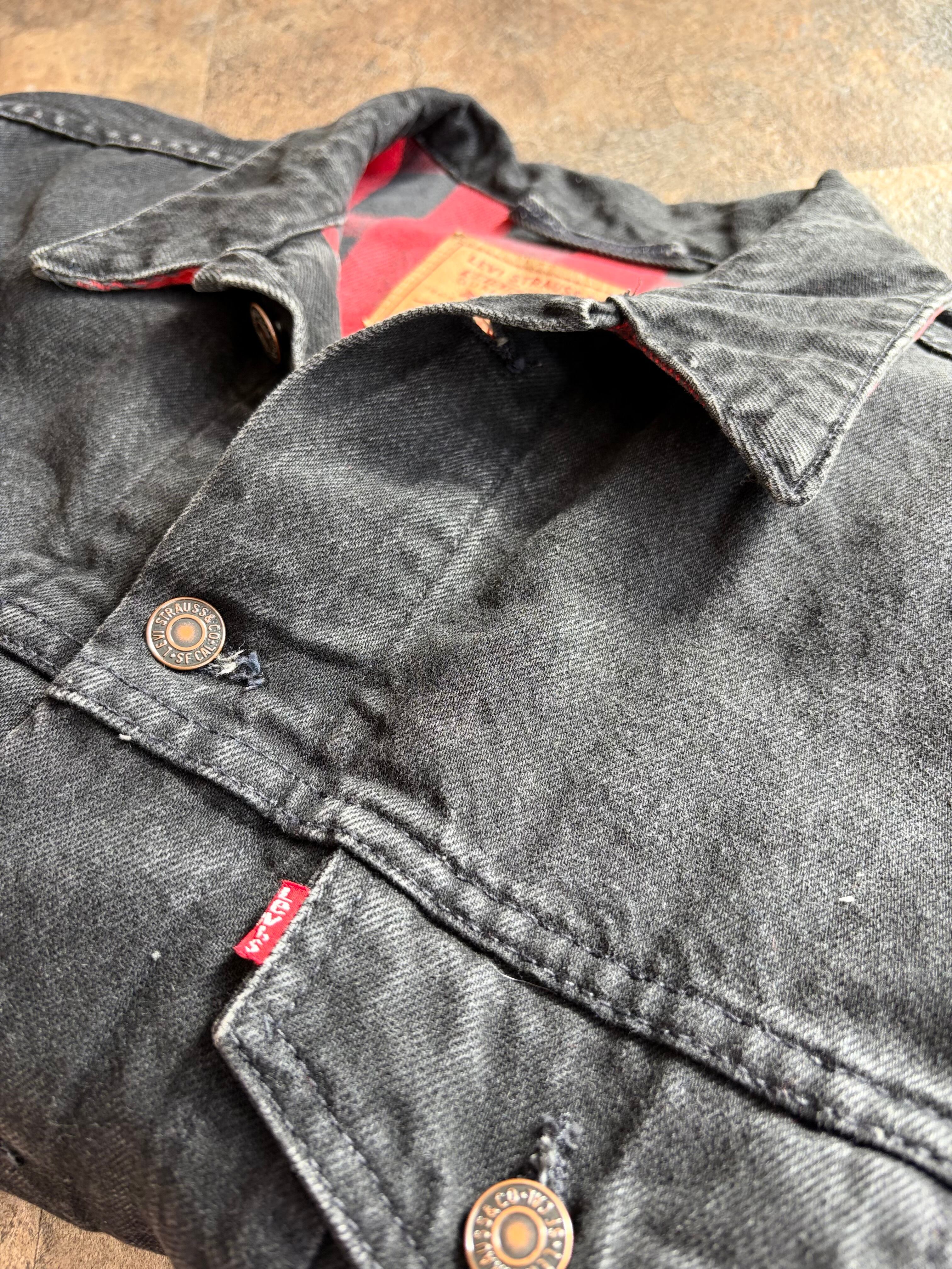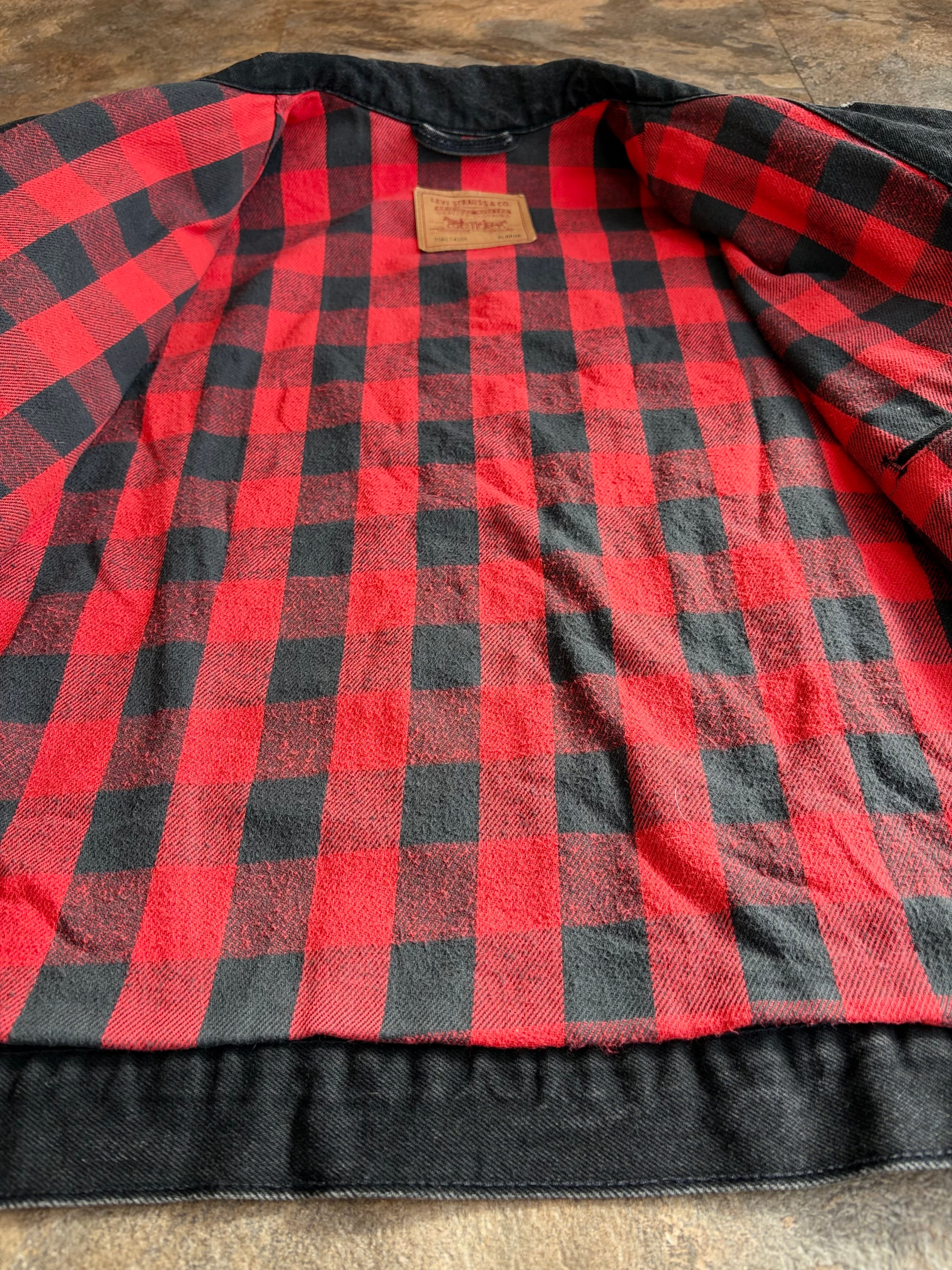 90’s LEVI’S 70417-4159 Black Denim Flannel Lined Trucker Jacket Made In U.S.A.