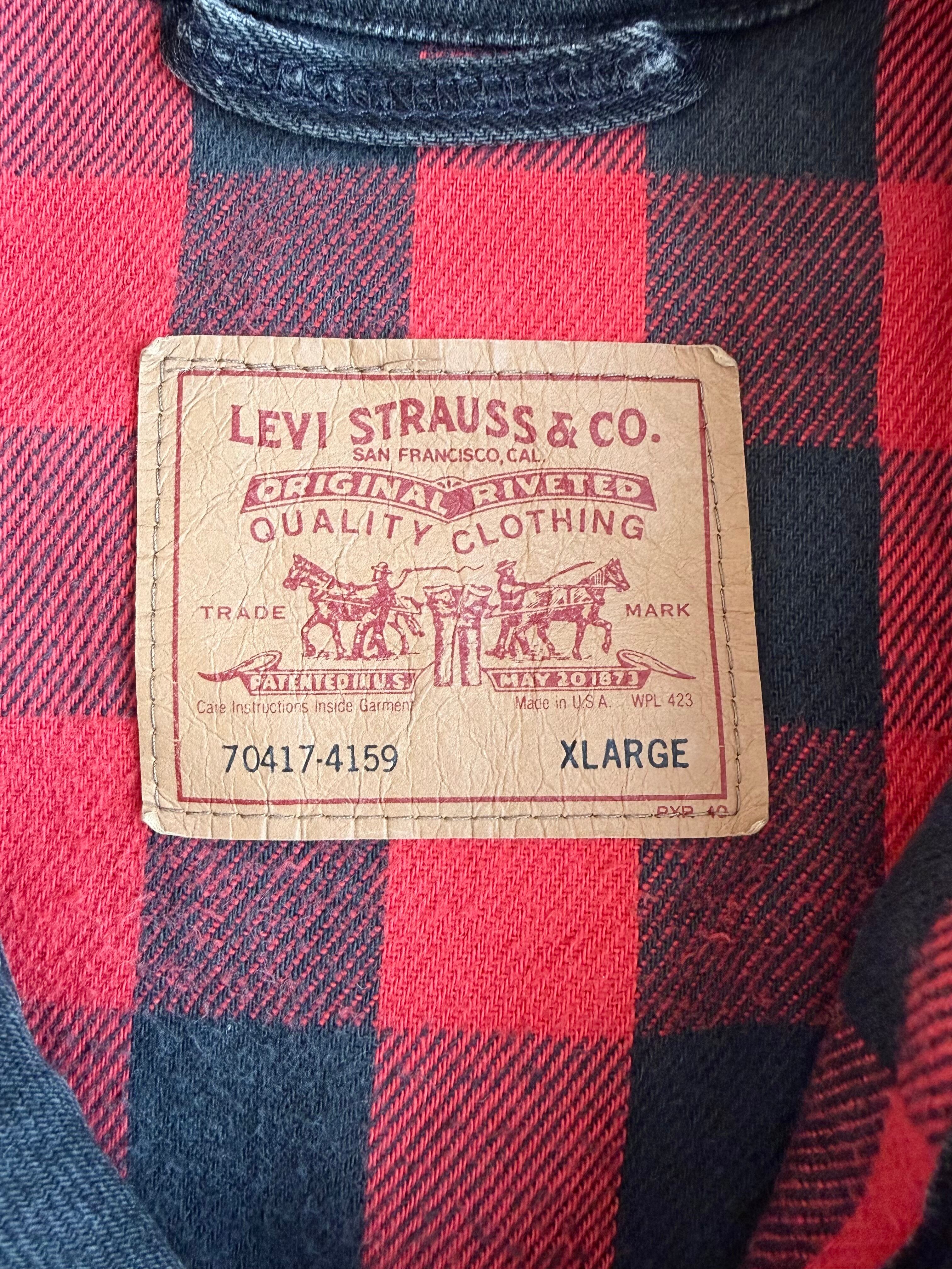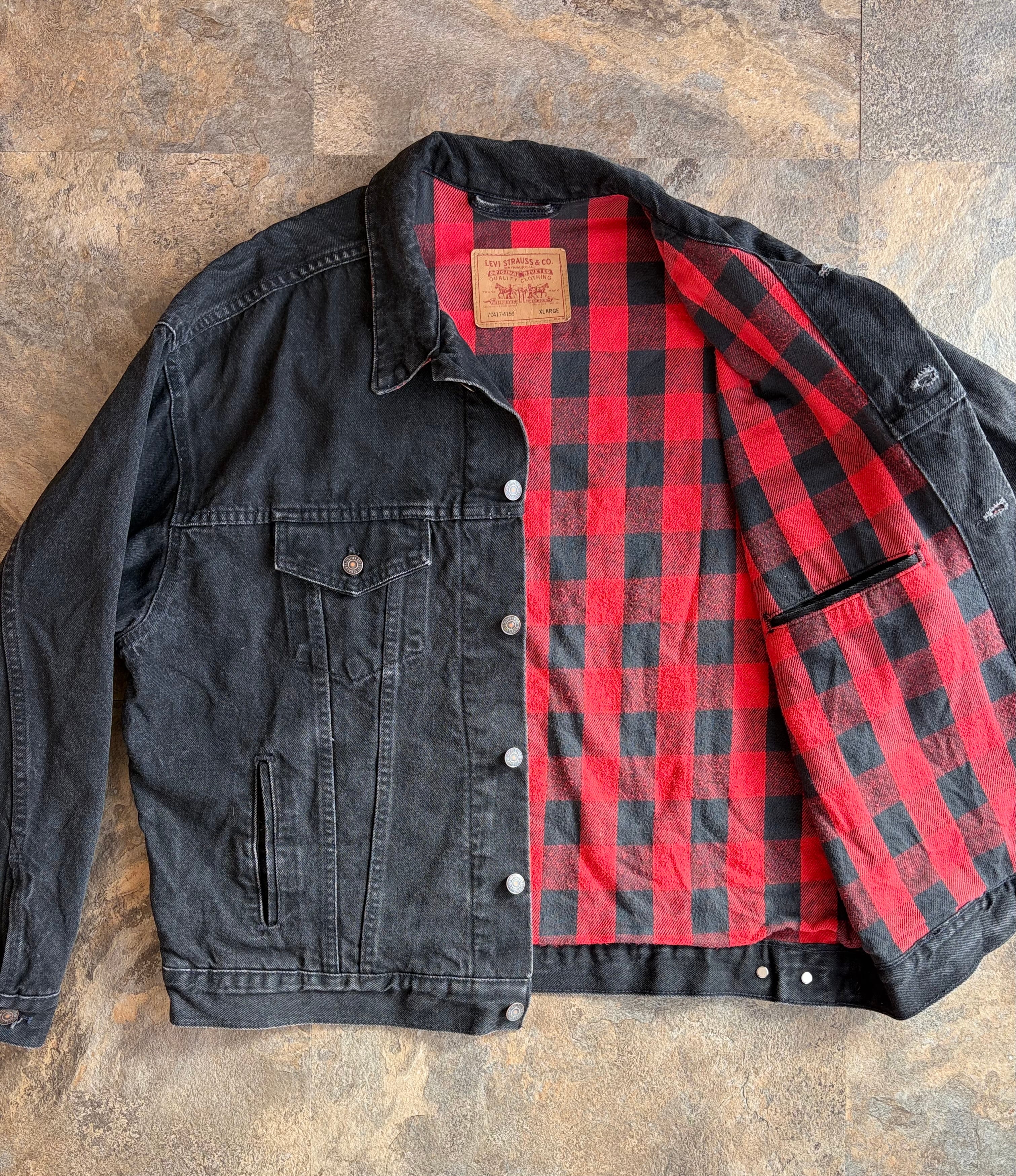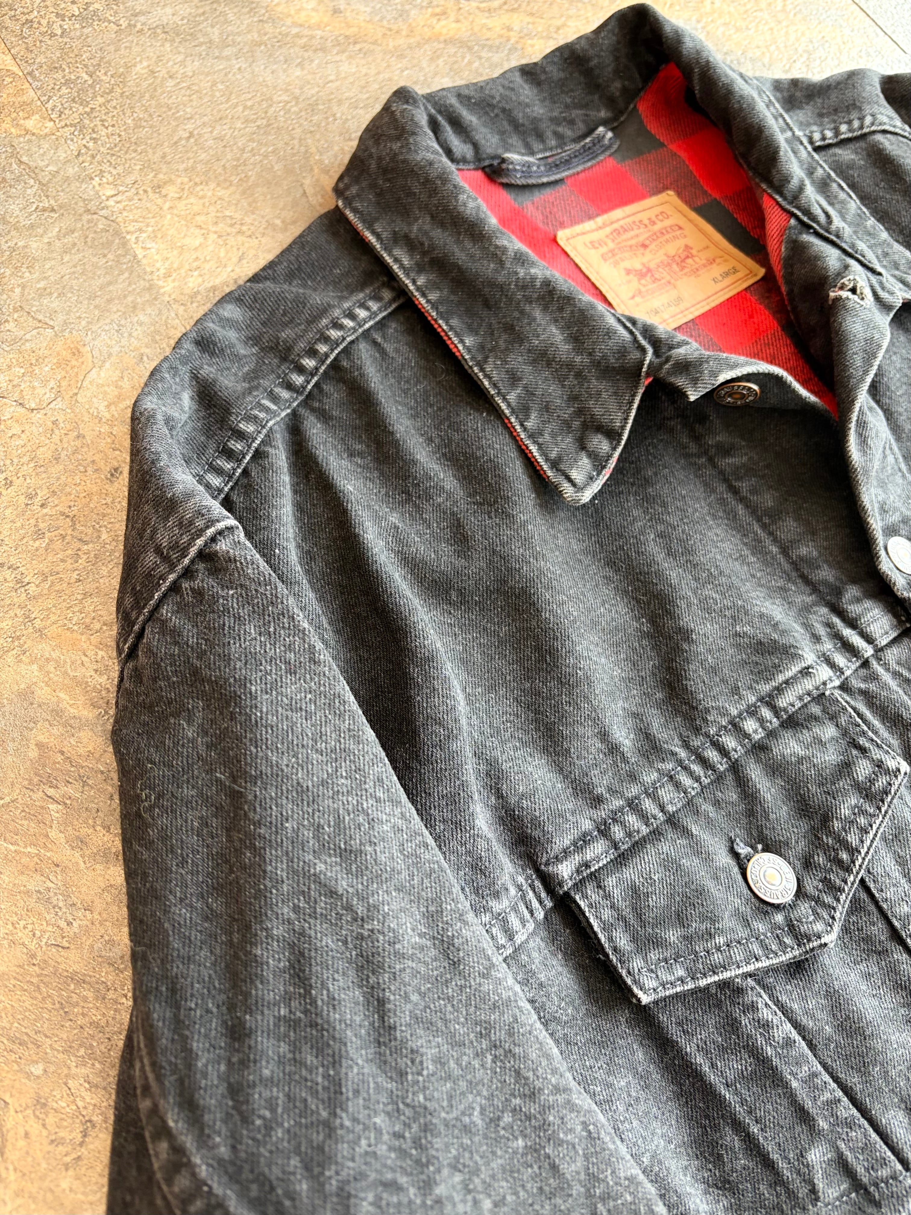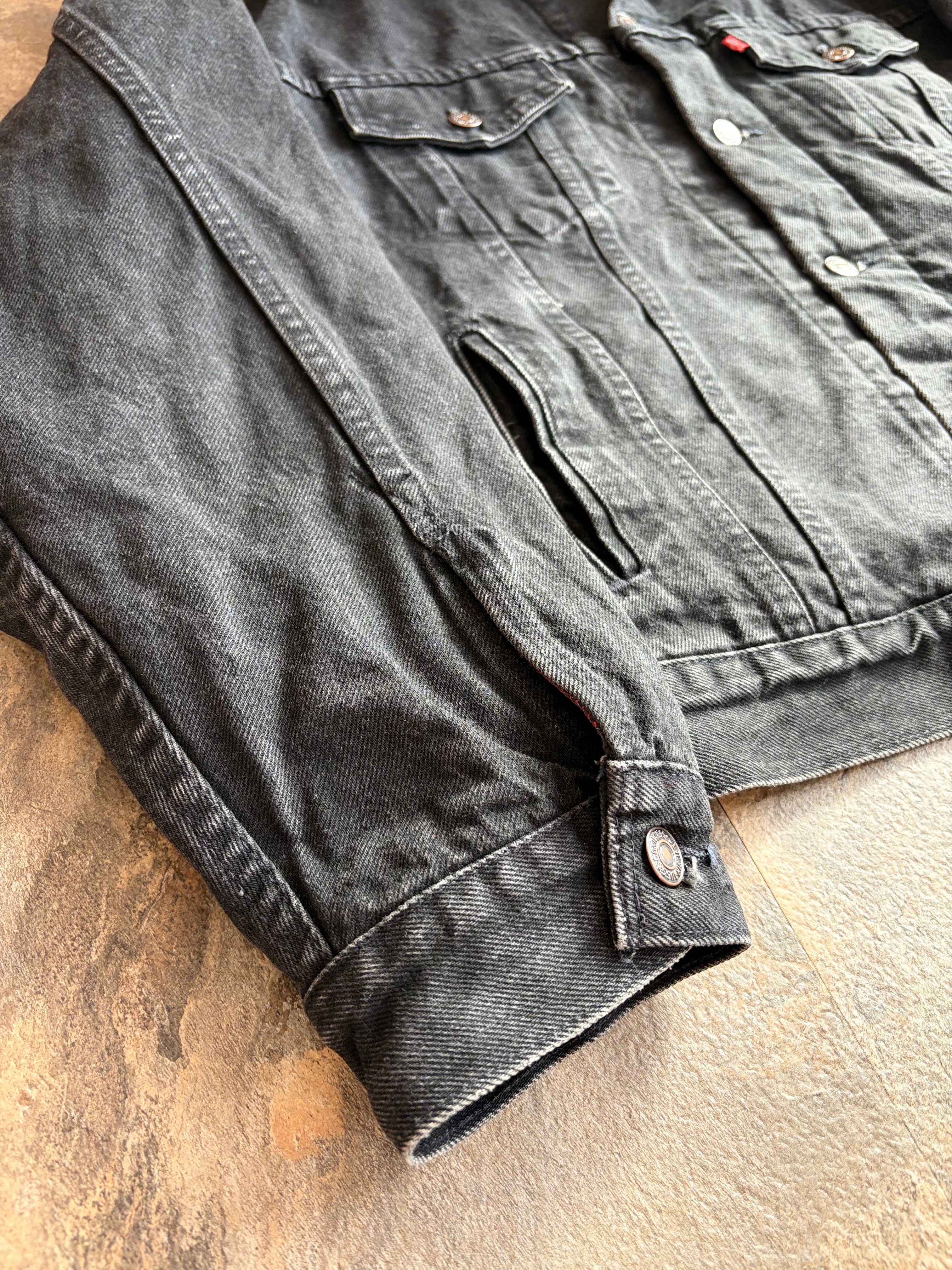 90’s LEVI’S 70417-4159 Black Denim Flannel Lined Trucker Jacket Made In U.S.A.