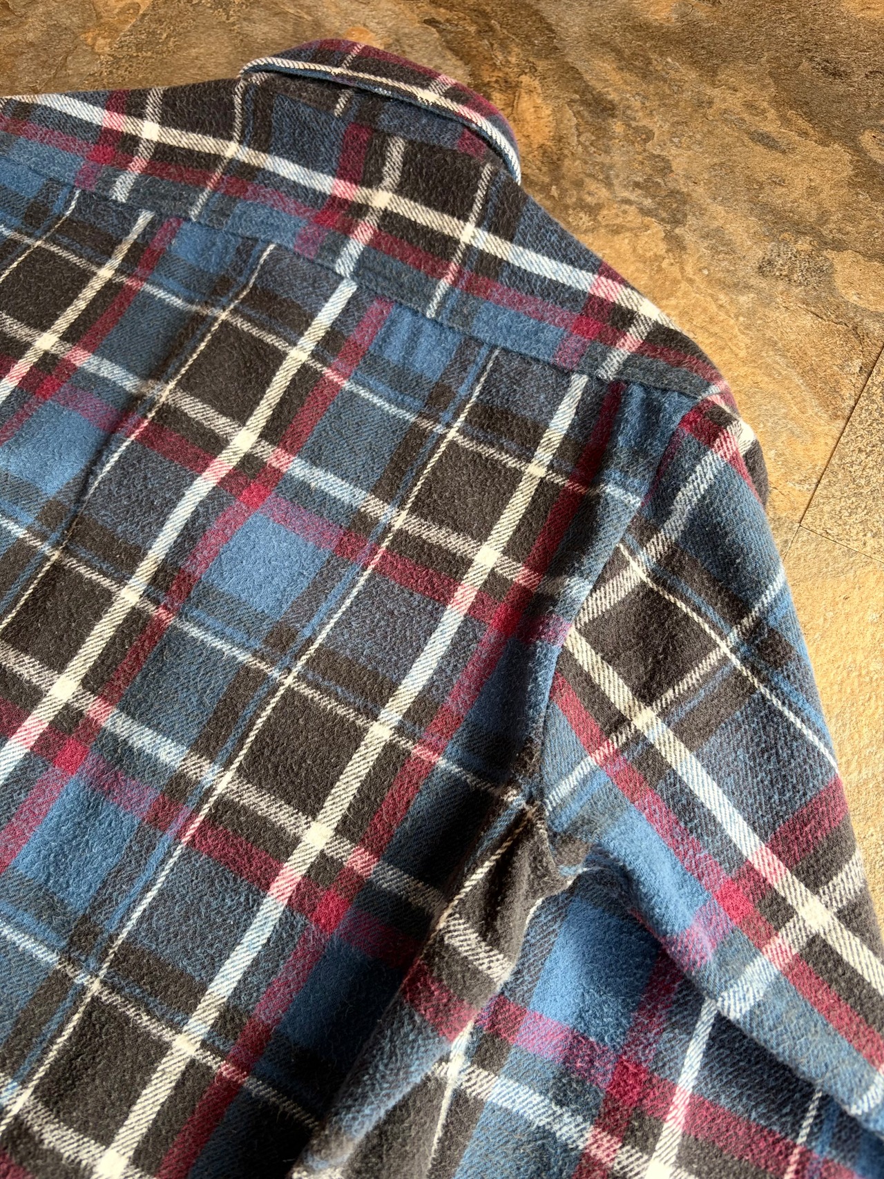 青黒ベースの好配色なネルシャツ。