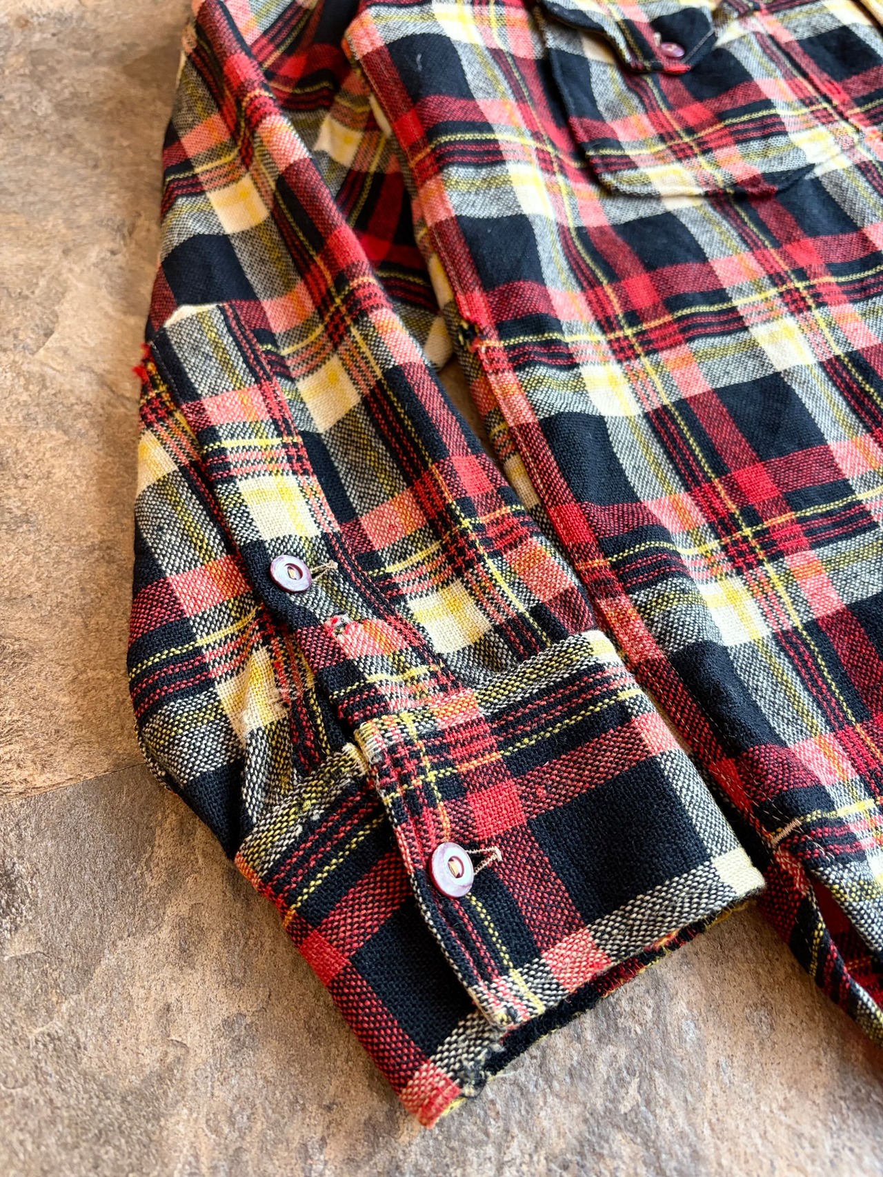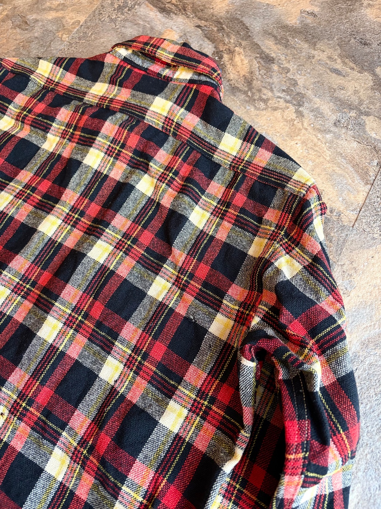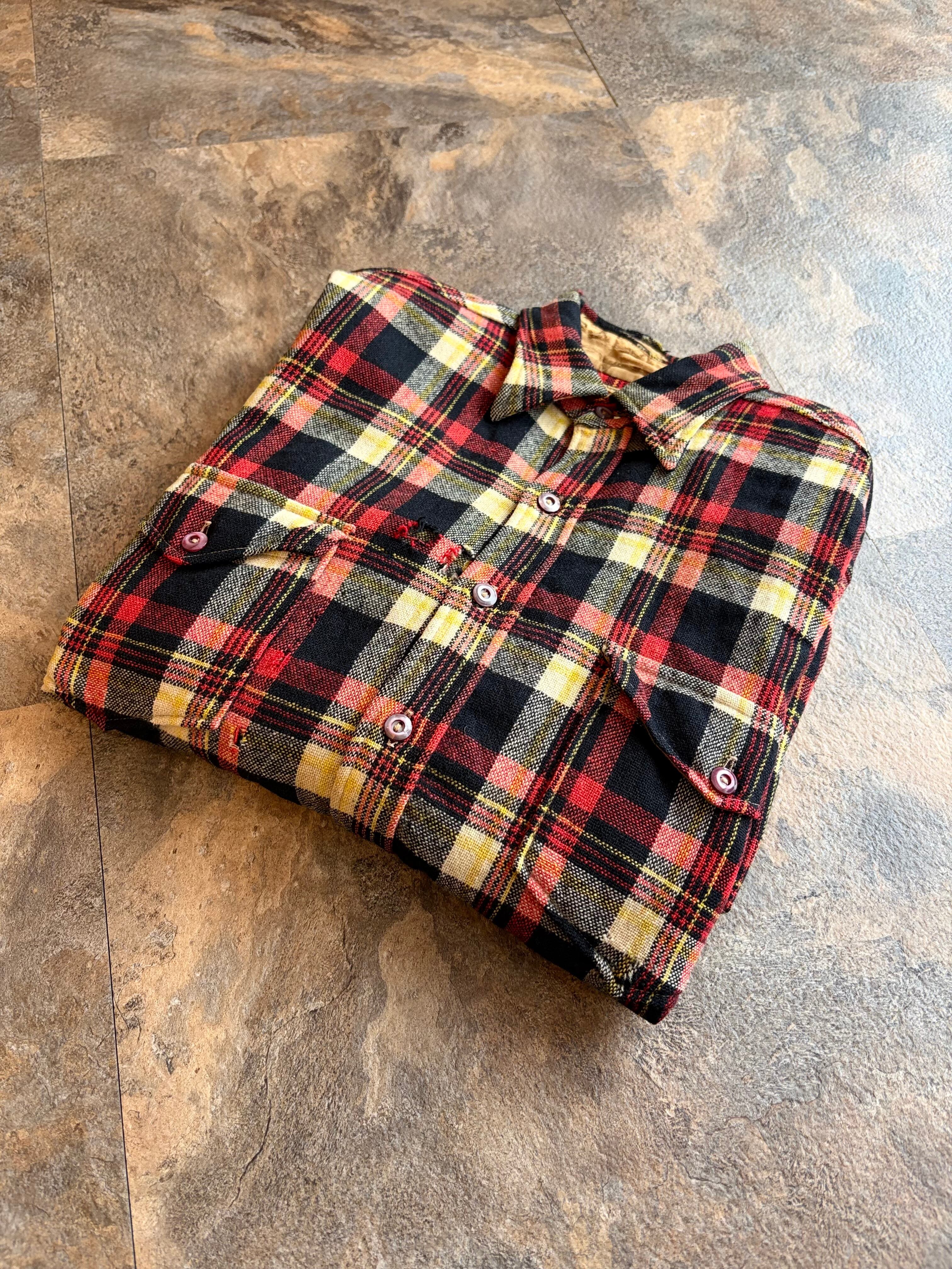 ブラック・レッド・イエローの好配色な多色チェック。アメカジの定番ながら、ヴィンテージならではの褪せた色味が抜群の雰囲気を醸し出しています。