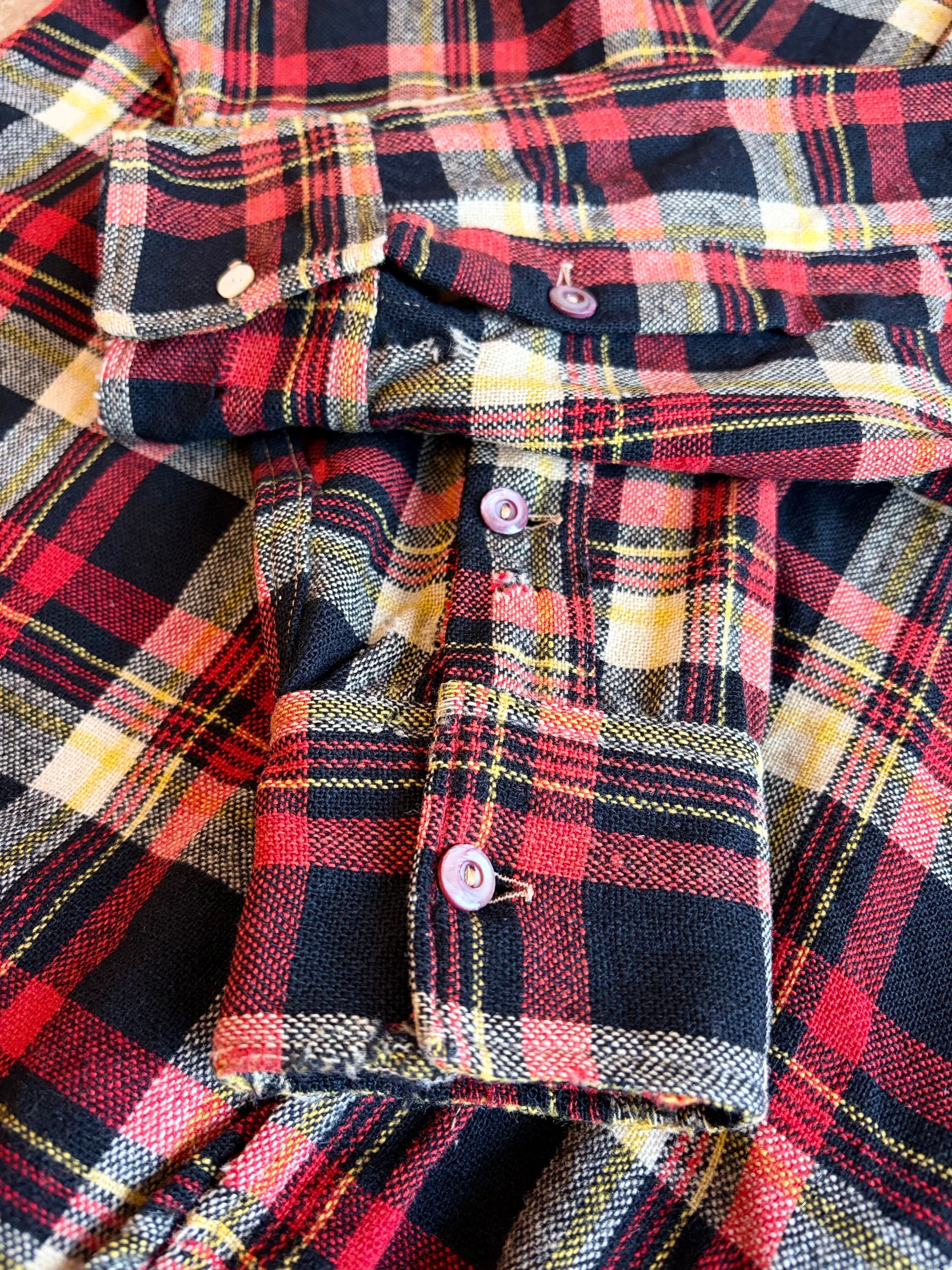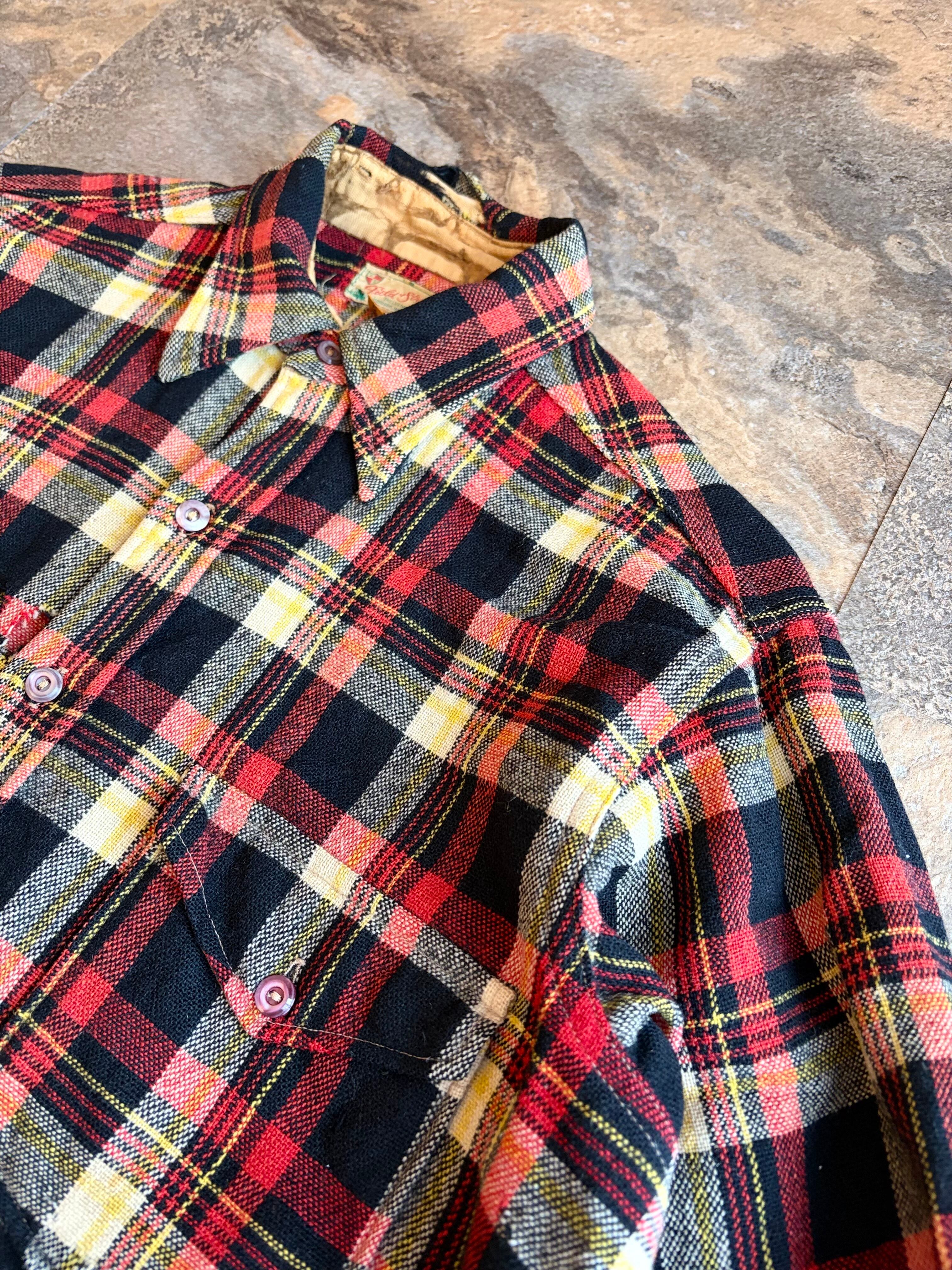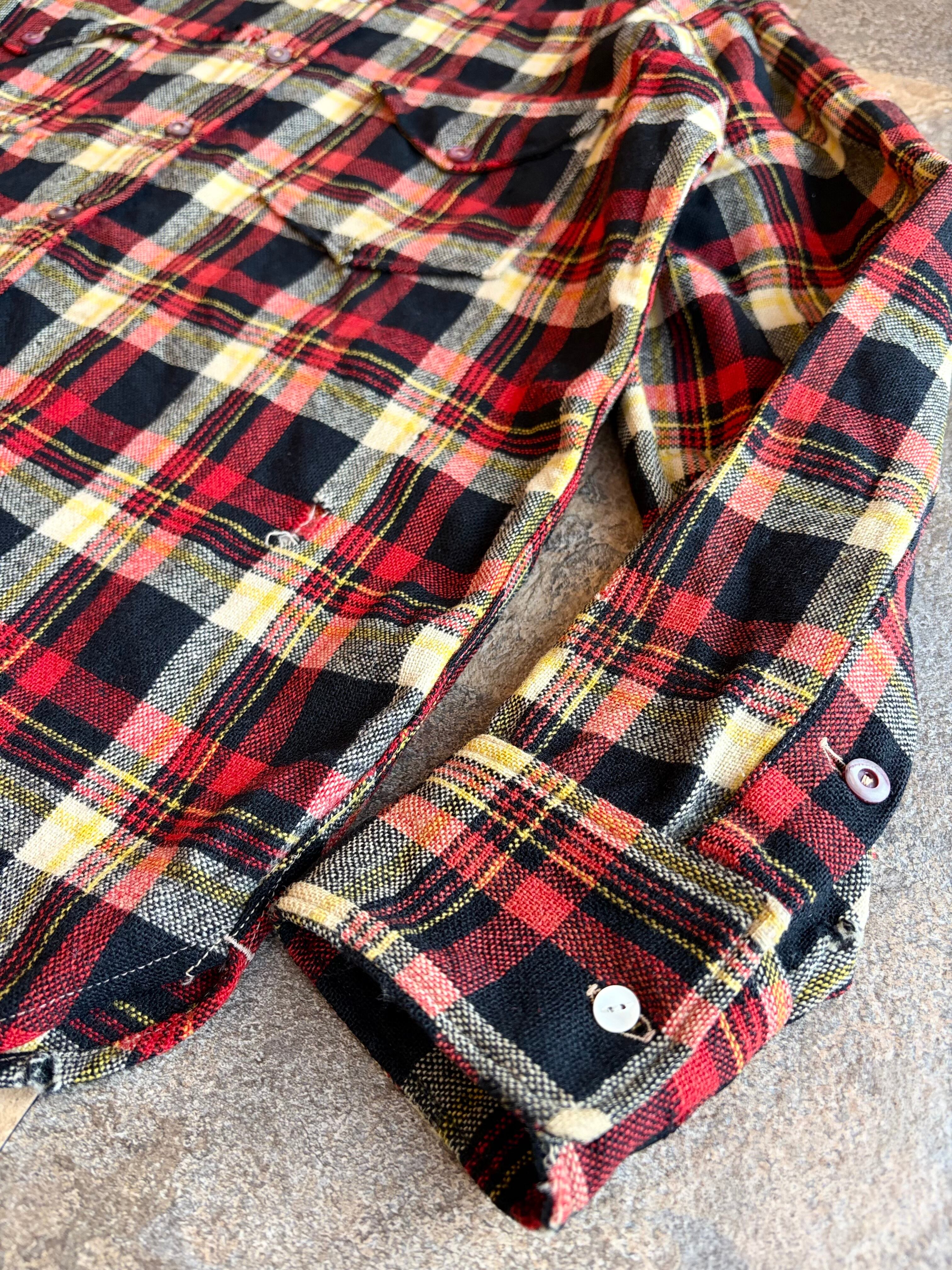 ブラック・レッド・イエローの好配色な多色チェック。アメカジの定番ながら、ヴィンテージならではの褪せた色味が抜群の雰囲気を醸し出しています。