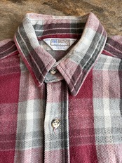 さらに、肉厚なヘビーフランネル生地を使い込むことで生まれた特有の起毛感が、チェックの境界線を程よく馴染ませ、現行のプリントネルには出せない織りによる重厚な柄の奥行きを引き出しています。