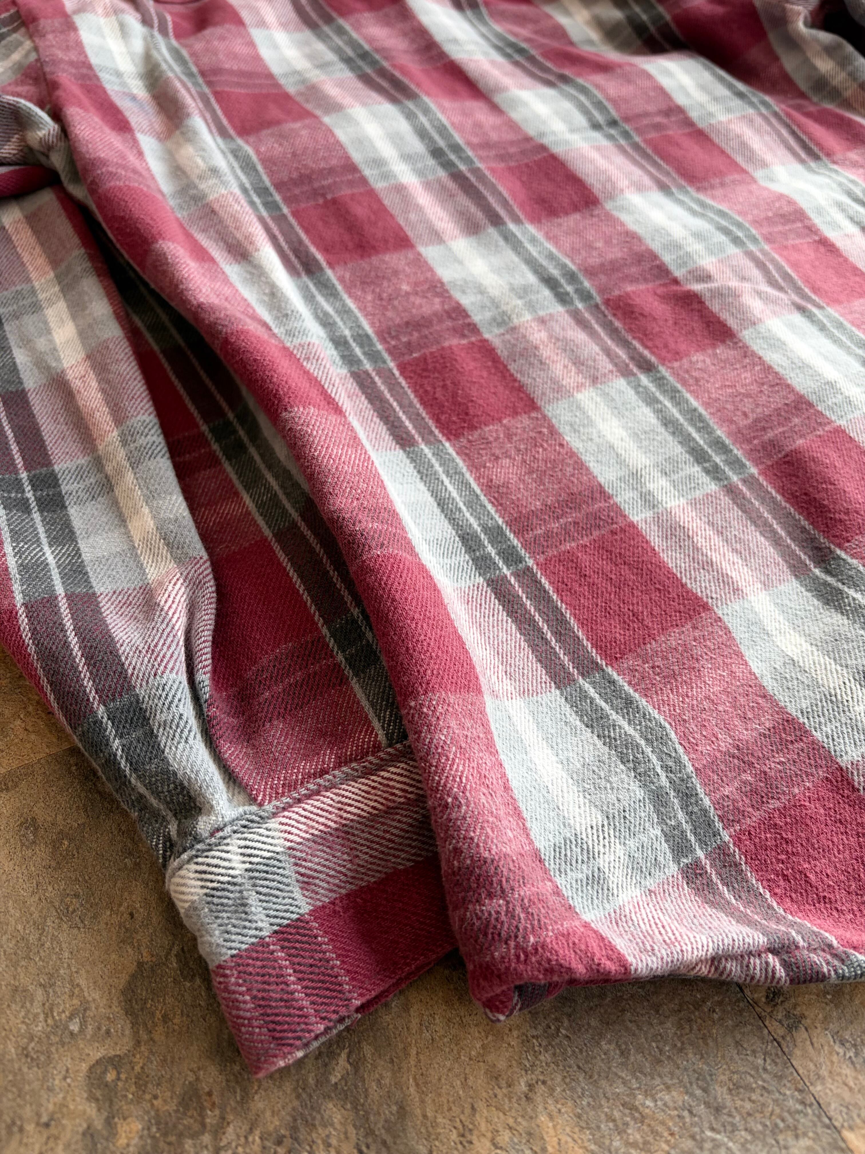 単なる「赤チェック」に留まらない、時を経たことで完成したヴィンテージならではの立体的な表情と、唯一無二の存在感をぜひお楽しみください。