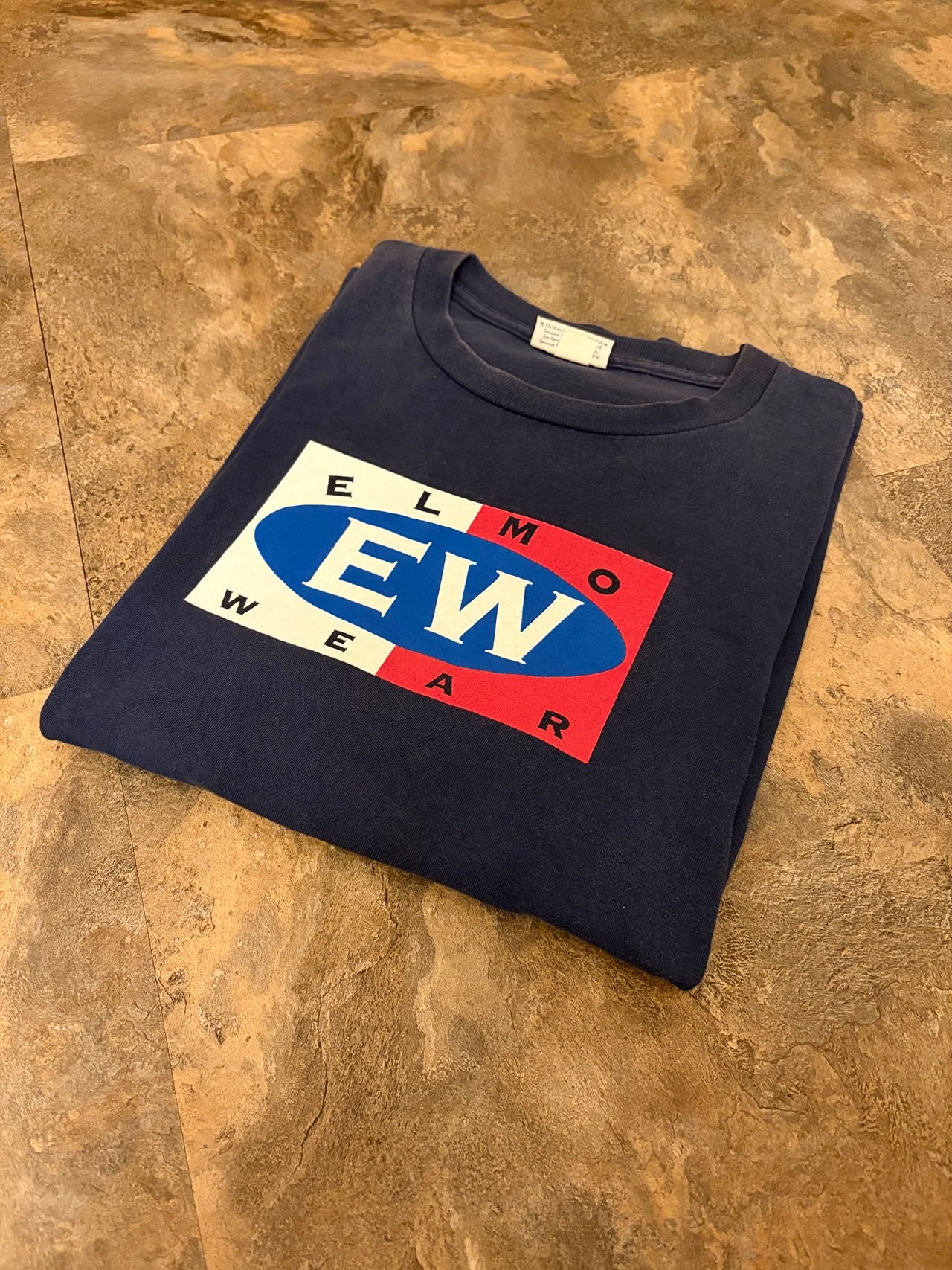 「ELMO WEAR」通称“EW”ロゴを冠した、90年代セサミストリートの希少なヴィンテージTシャツ。