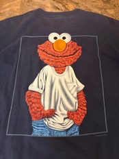 バックには、白Tにデニムを履いた「ストリート・エルモ」が大きくプリントされた、遊び心満載の一着です。
