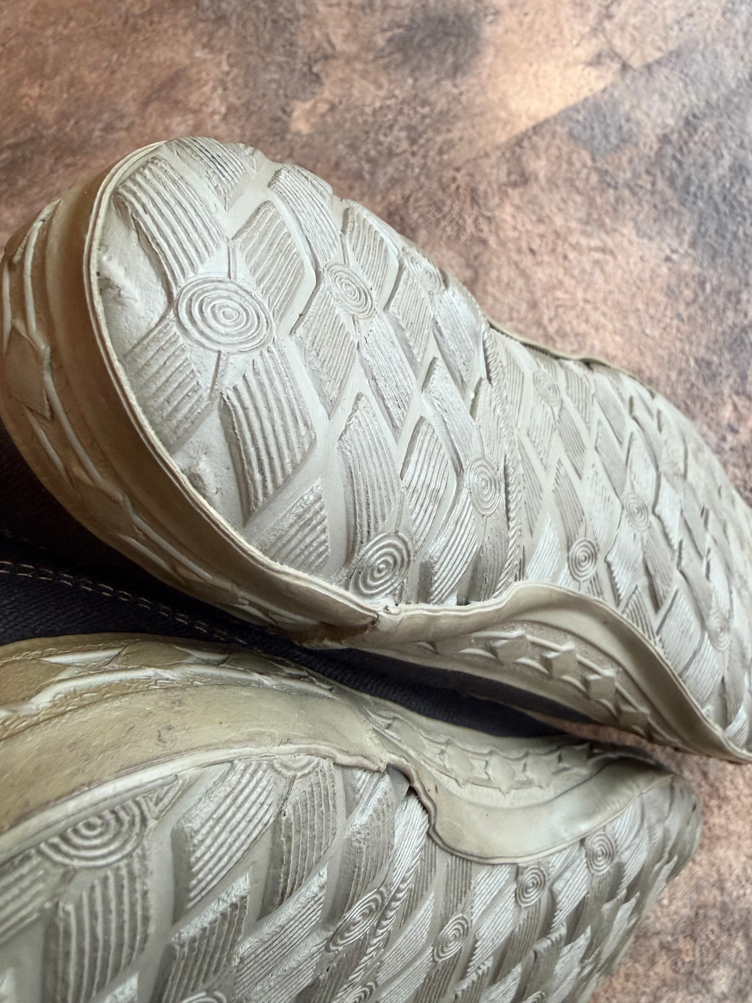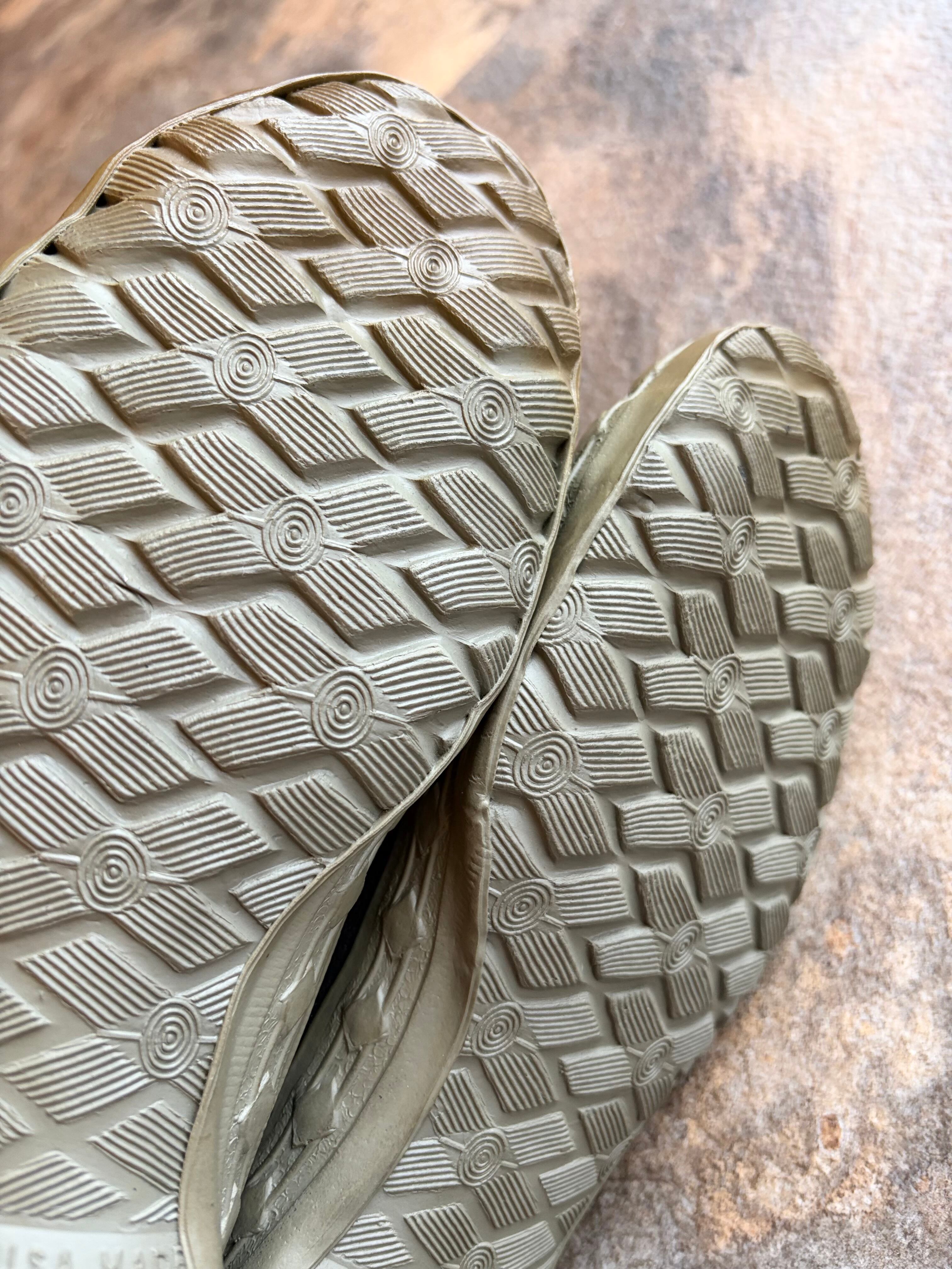 米軍のトレーニングシューズ(M-43等)の系譜を汲む武骨なシルエットと、当時のハイテク技術が融合した歴史的ピースです。