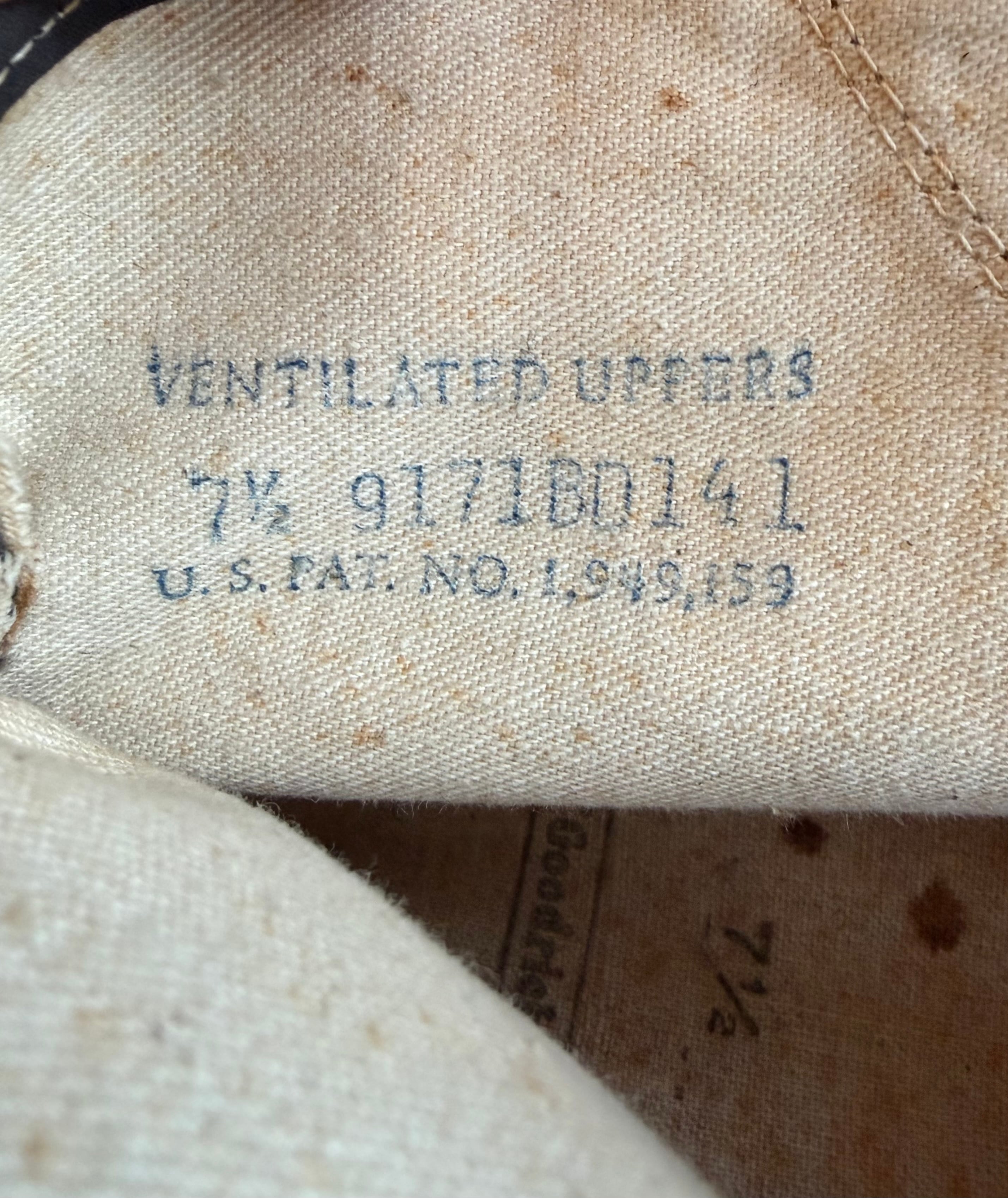 アンクル裏に「U.S. PAT. NO. 1,949,159」の印字。1934年に取得された伝説的な「Posture Foundation(土踏まずサポート)」の特許番号が鮮明に残っています。