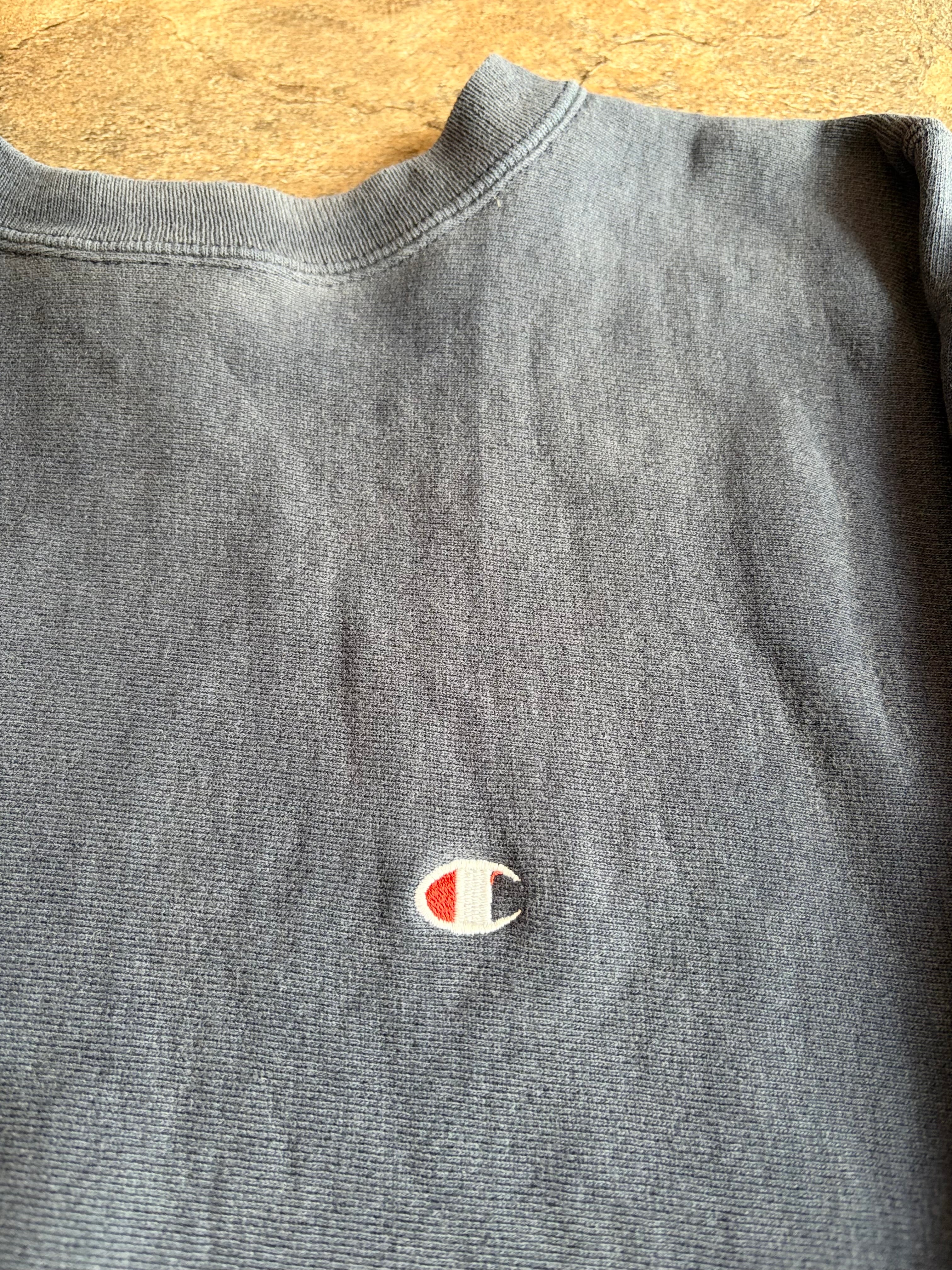 90s champion チャンピオンリバースウィーブ ネイビーフェード 目付き