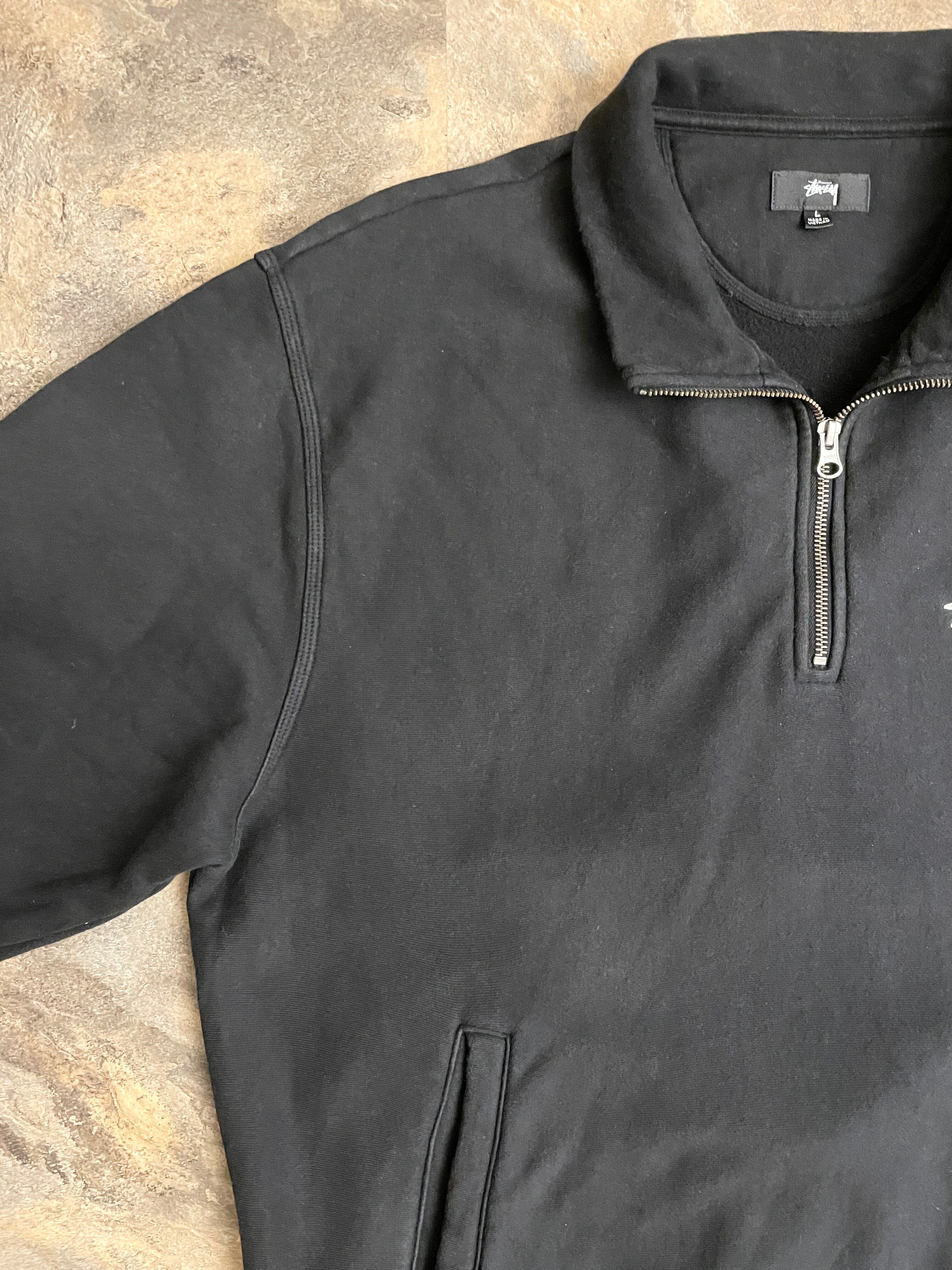 STUSSY ハーフジップ モックネック スウェット Lサイズ ブラック
