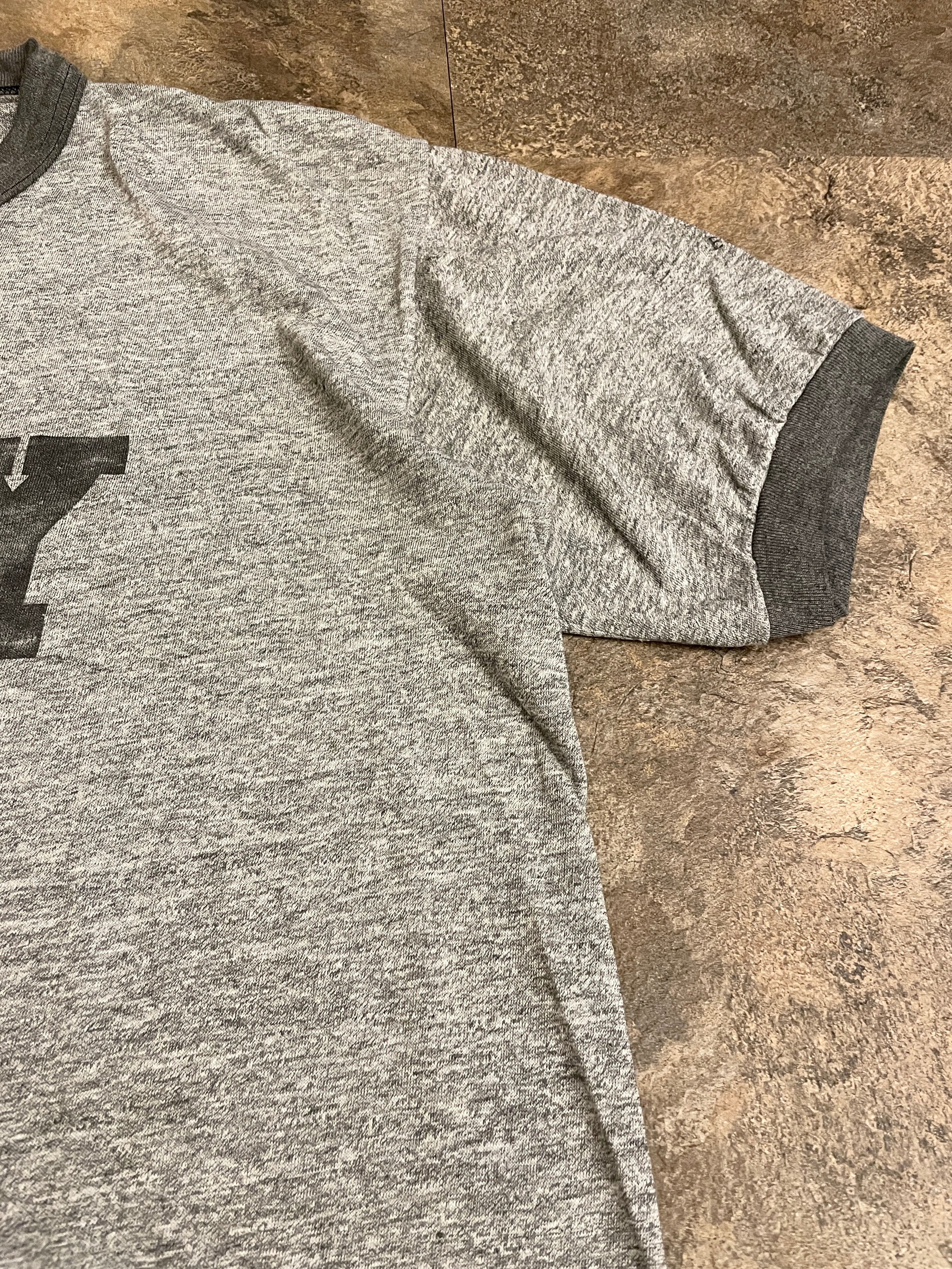 ARMY ミリタリー リンガー Tシャツ 優秀賞 染み込み プリント 杢 霜降りグレー