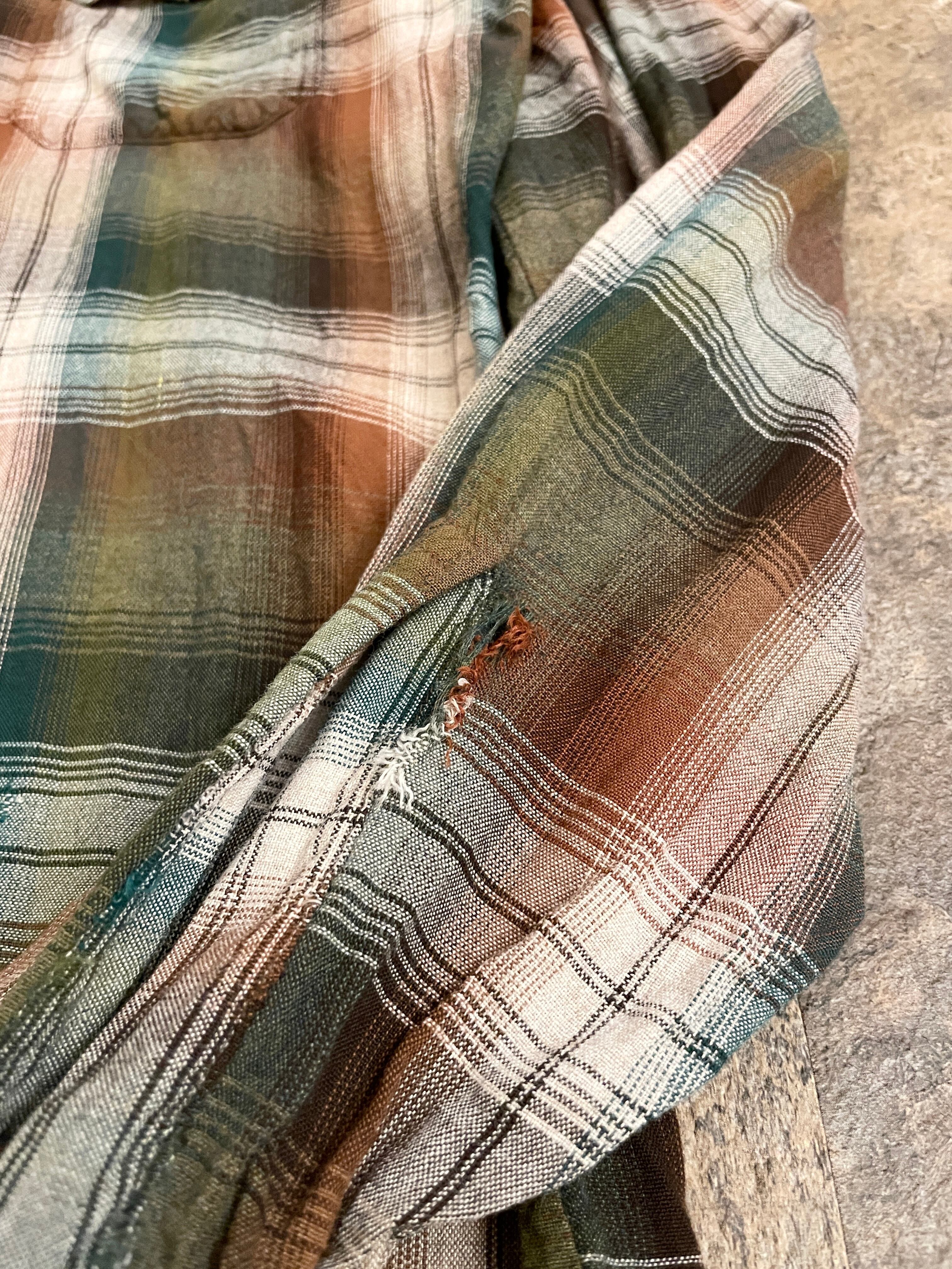 70〜80s ARROW アロー オンブレ レーヨン チェック シャツ 実寸下記↓